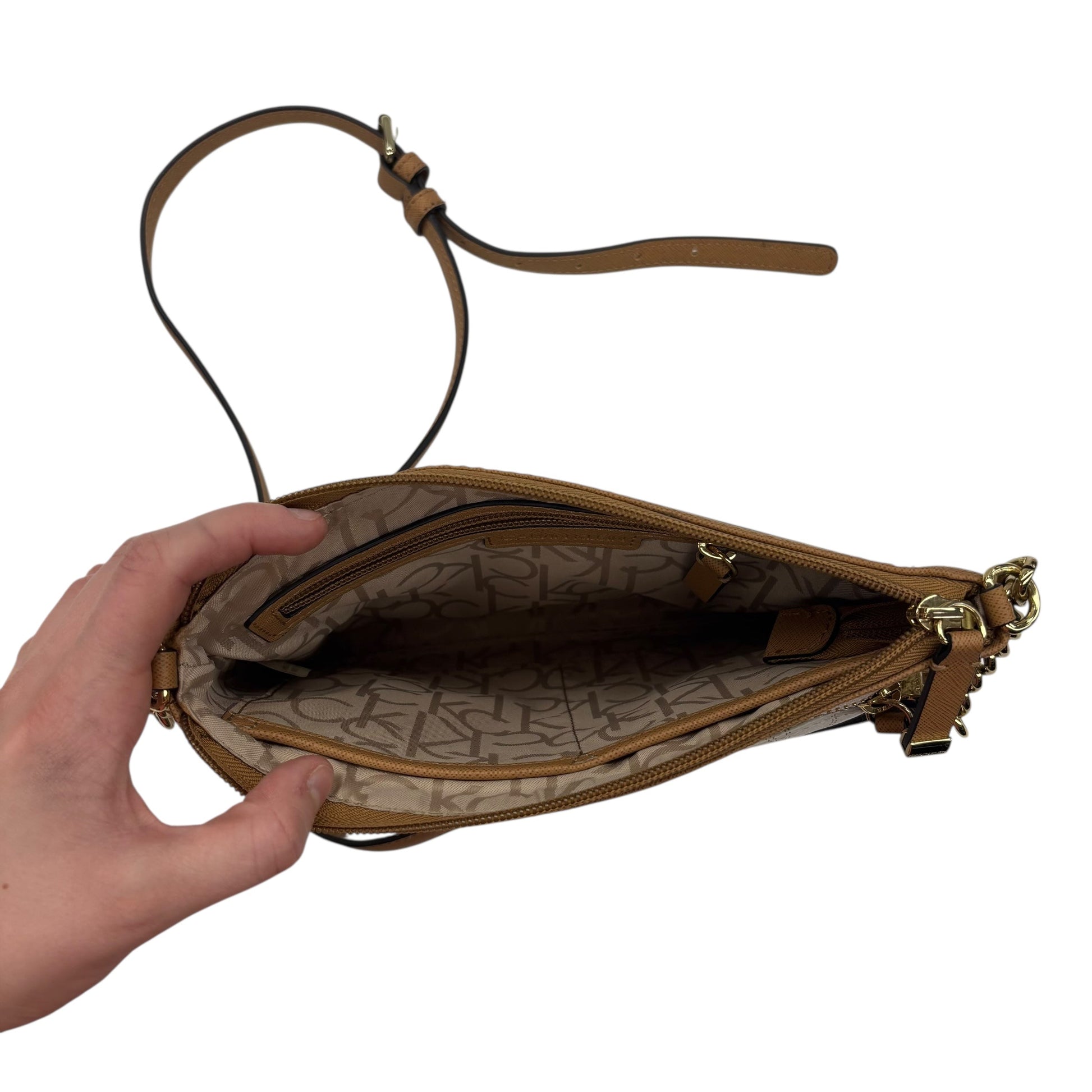 Calvin Klein Cream Medium Crossbody: Sleek, versatile, and effortlessly chic. Perfect for everyday style statements.
