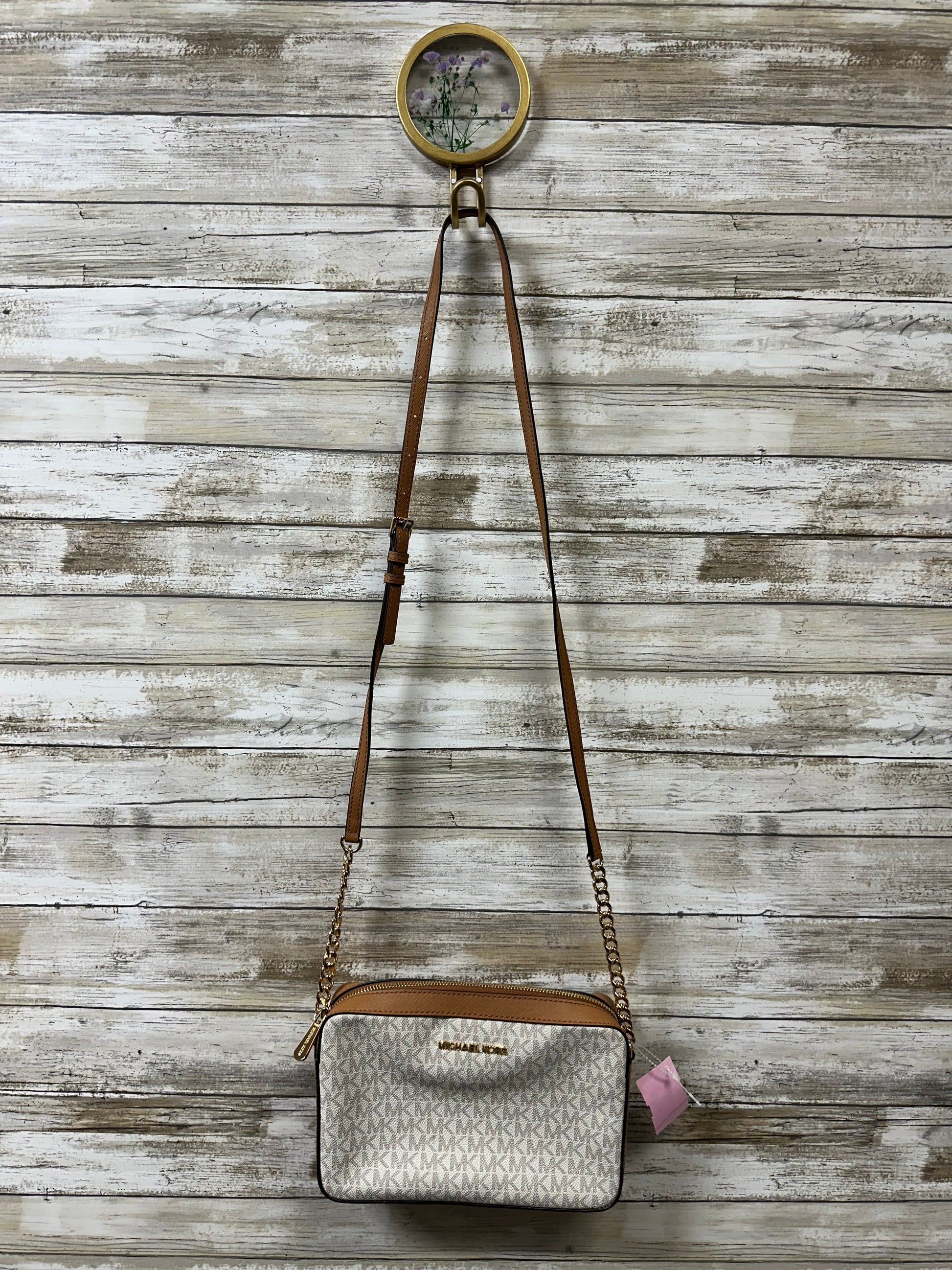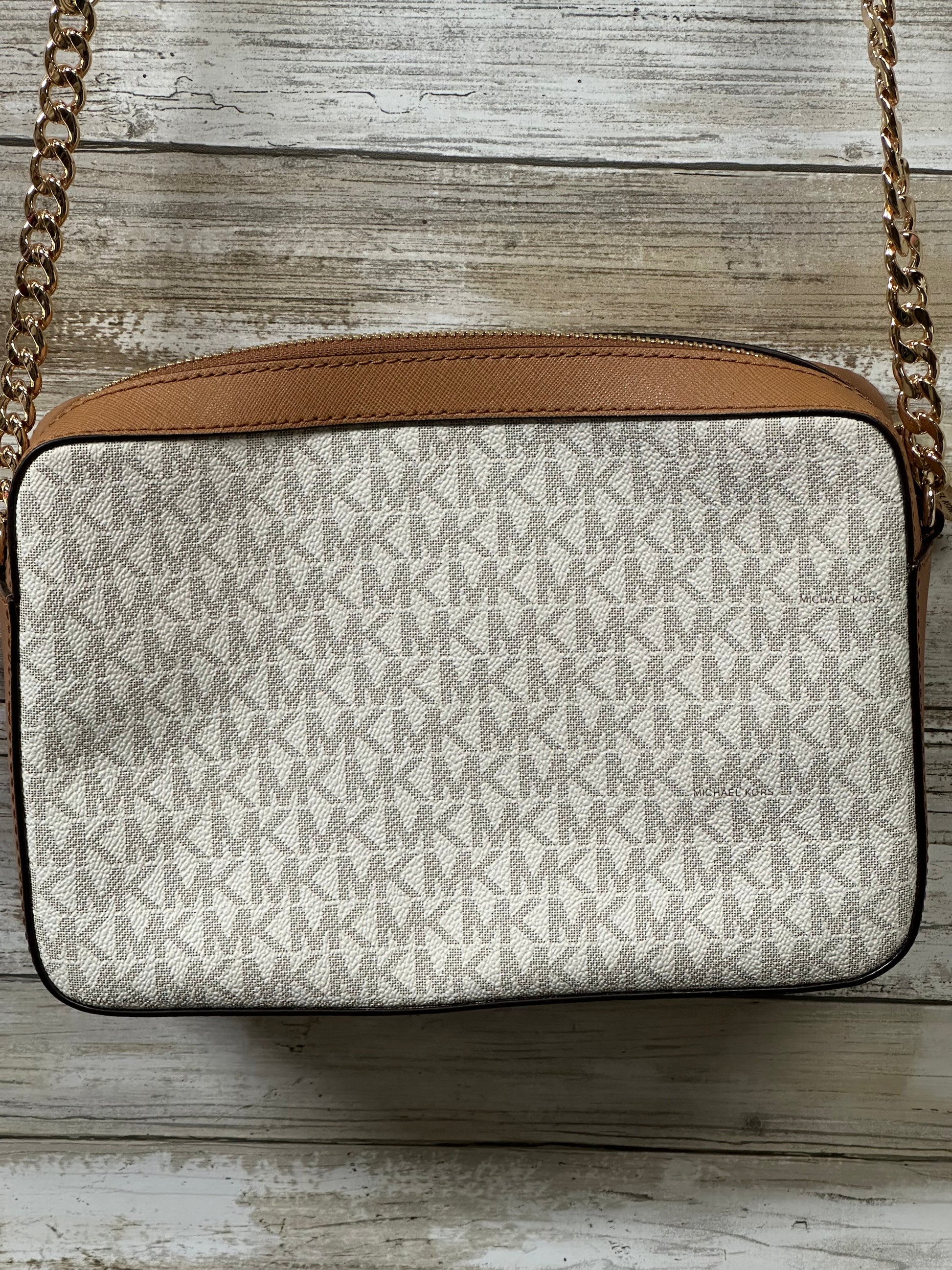 Crossbody Designer By Michael Kors In Brown & White, Size:Medium