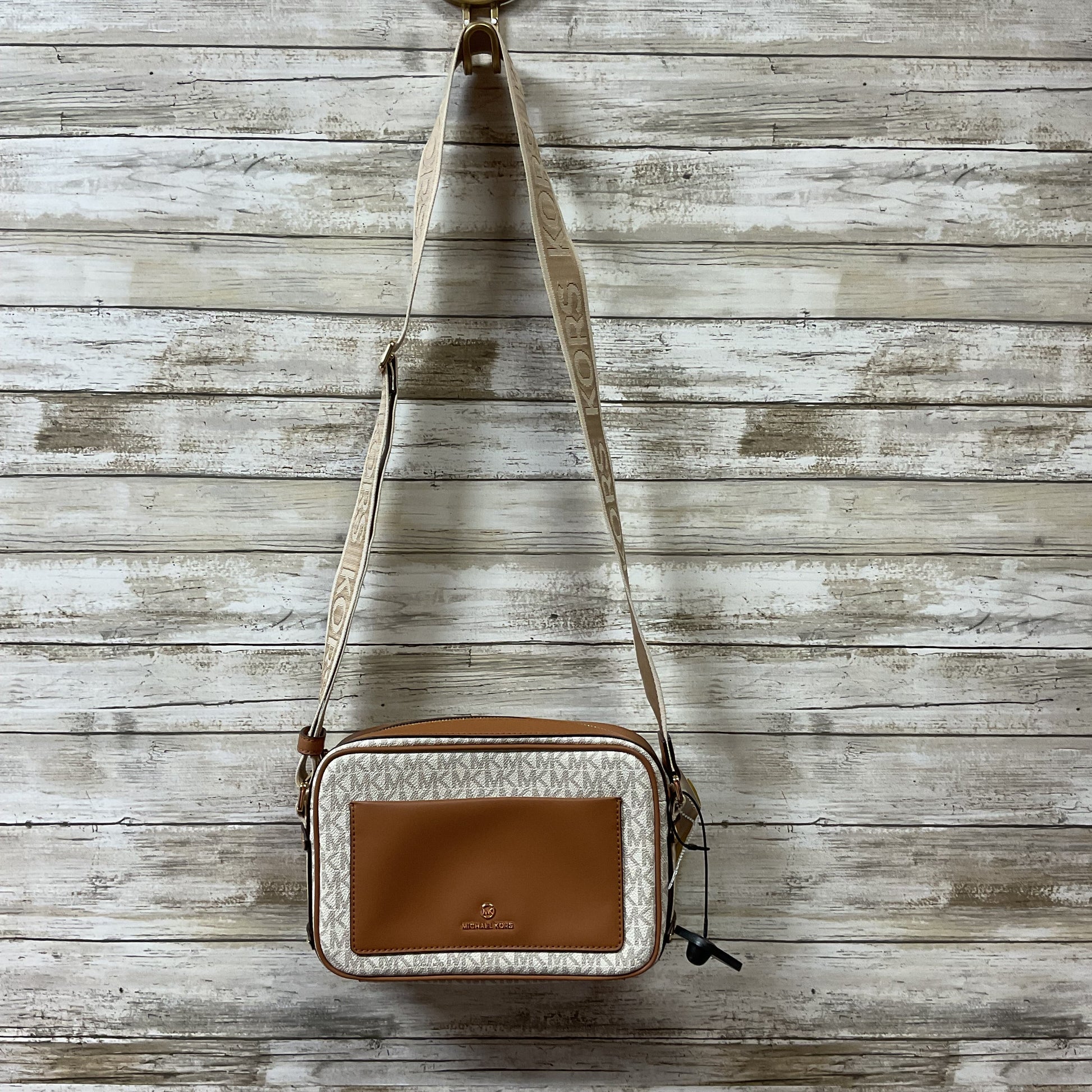 Crossbody Designer By Michael Kors In Tan & White, Size:Medium