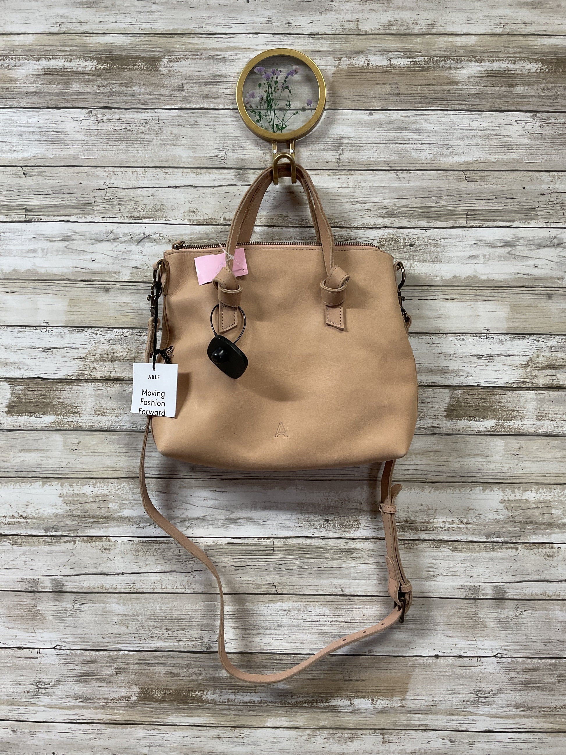 Crossbody Leather By Able In Beige, Size:Medium