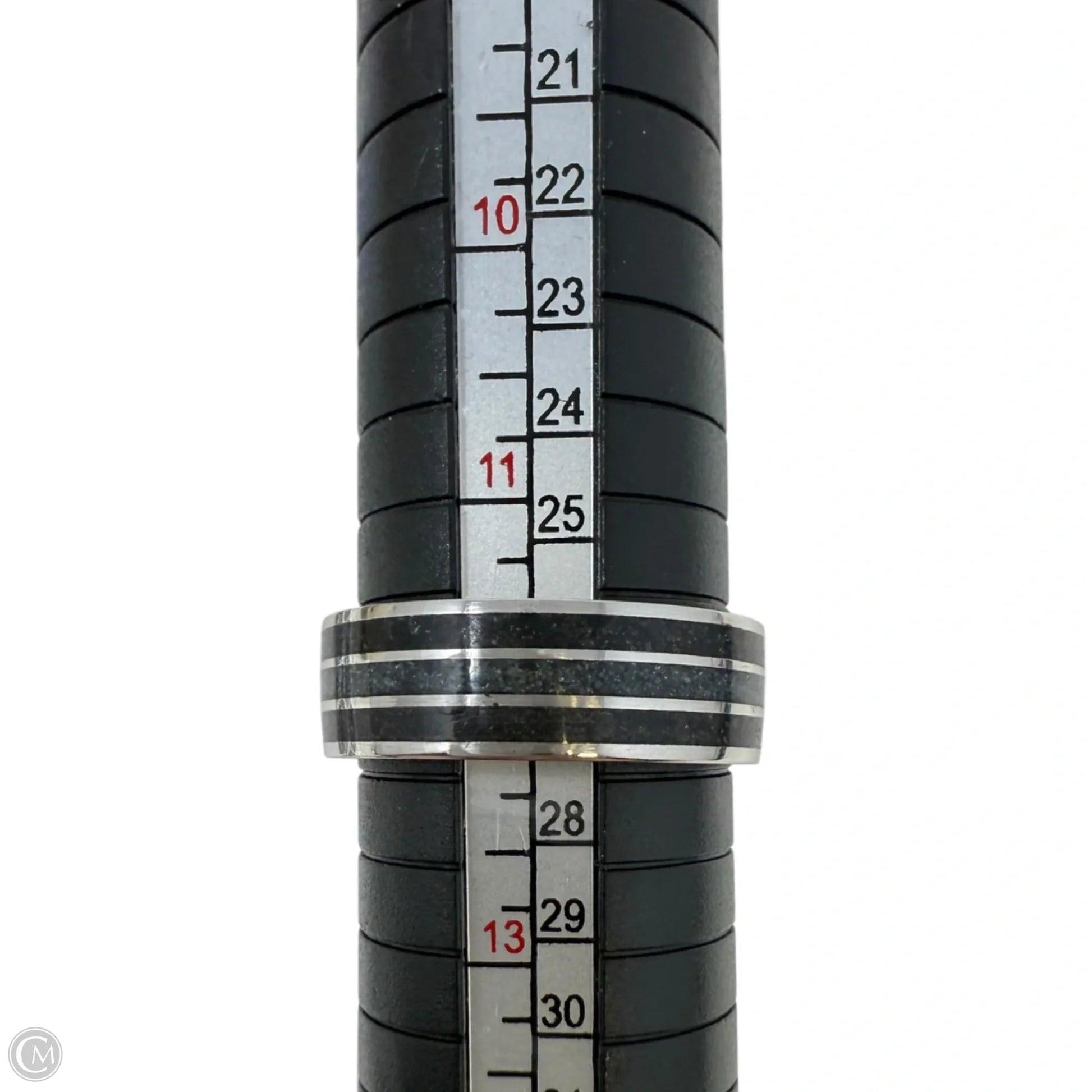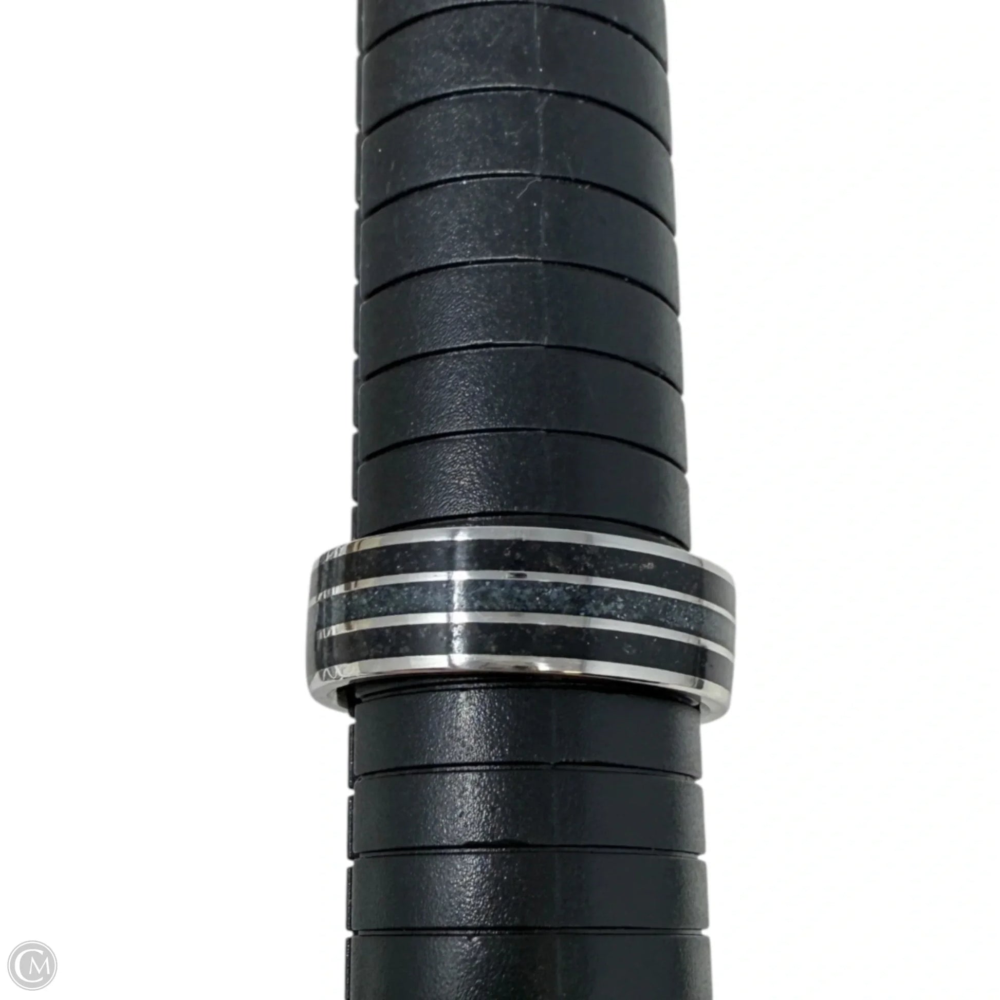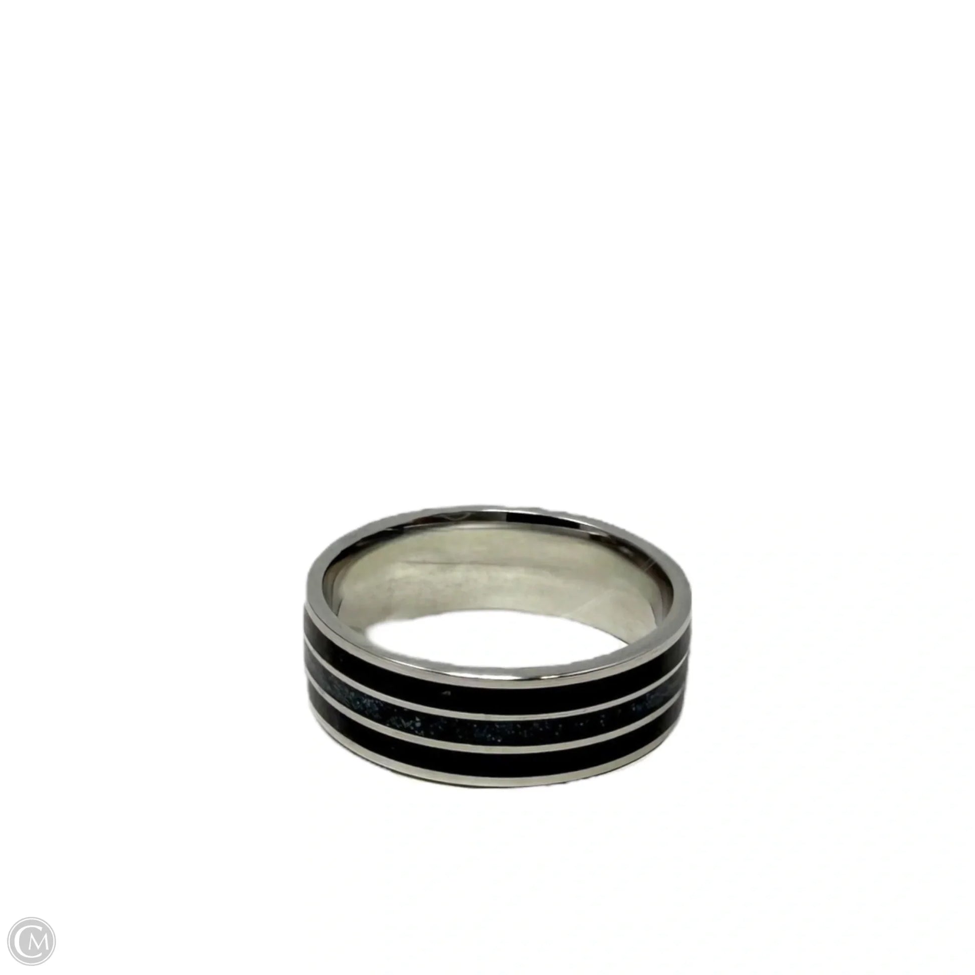Crushed Black Quartz Triple Inlay Band Ring, Size: 12