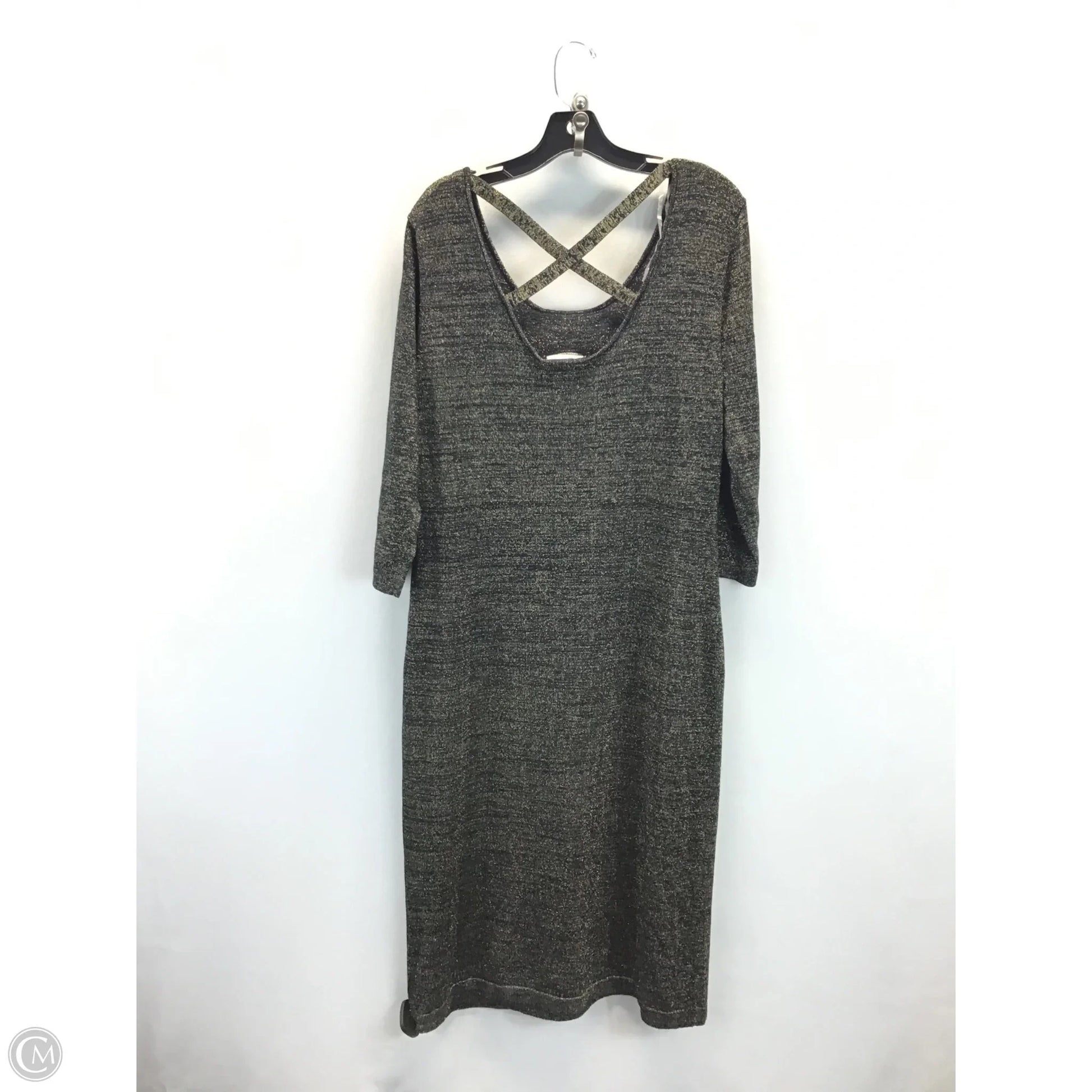 Dress Casual Midi By Allison Brittney In Black & Gold, Size: Xl