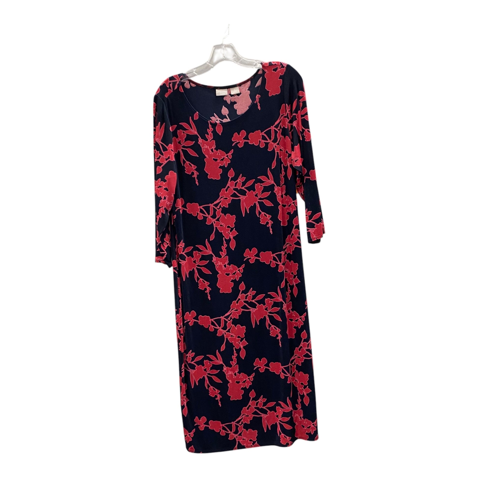 Dress Casual Midi By Chicos In Blue & Red, Size:L