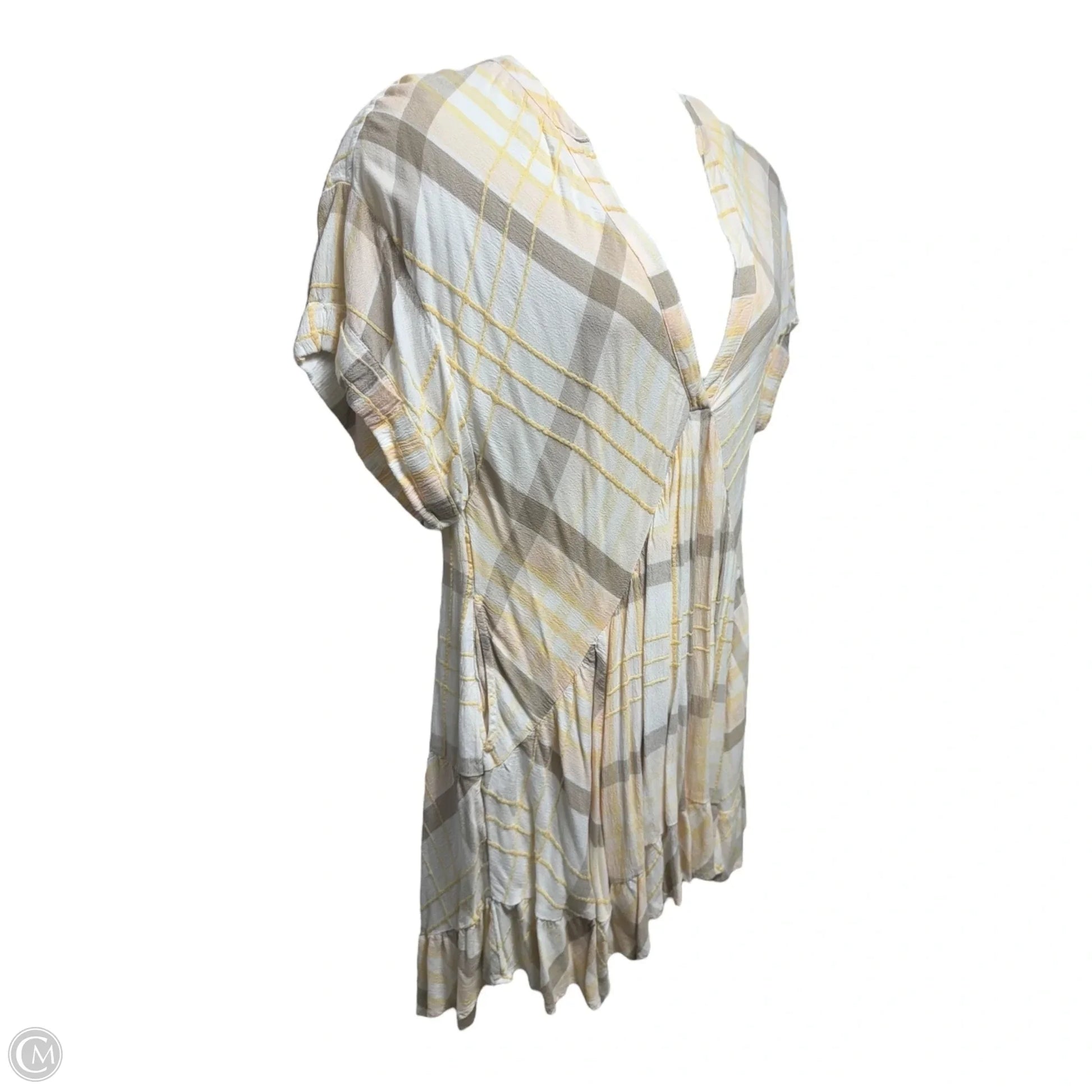 Agnes Plaid Mini Dress By Free People In Cream & Yellow, Size: M