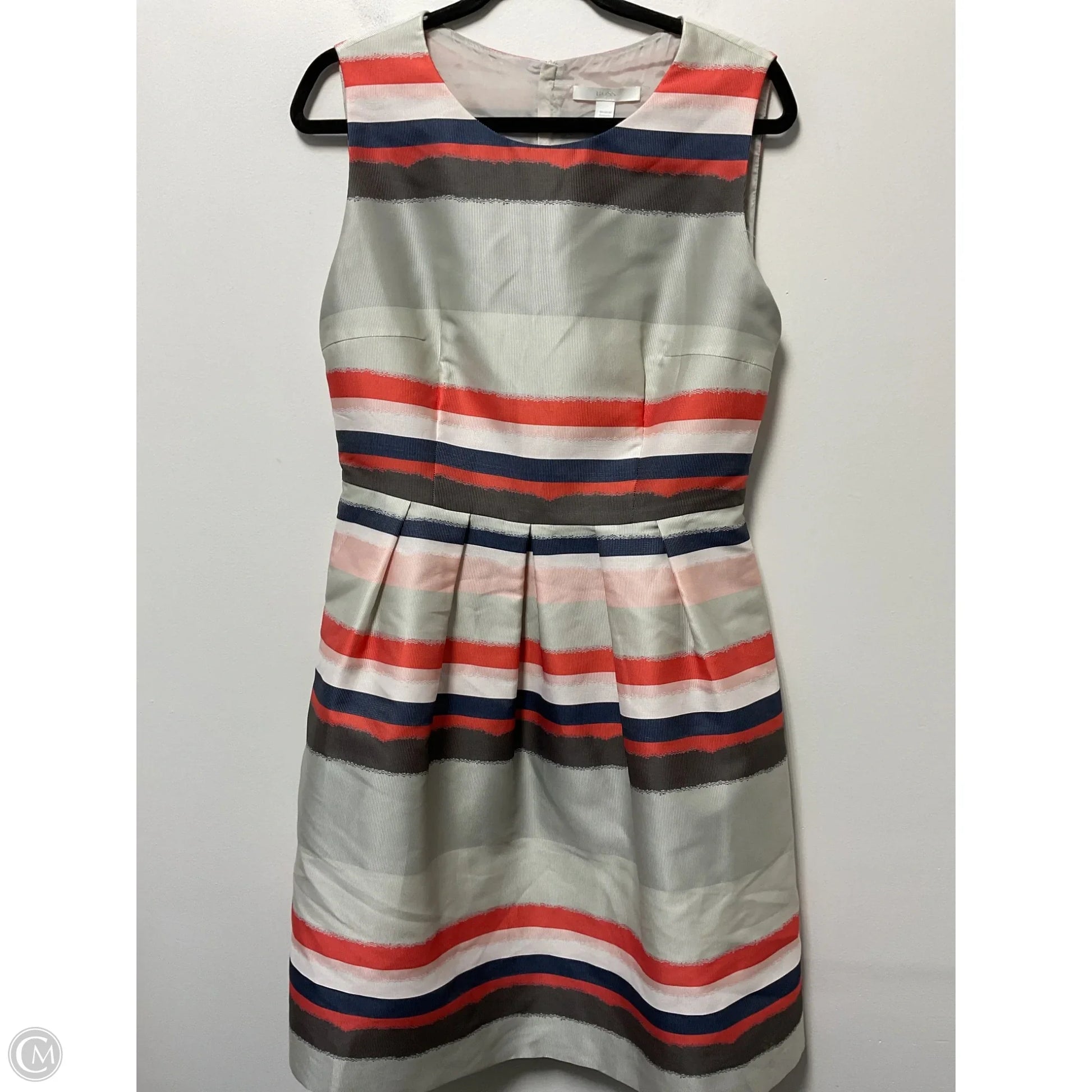 Dress Casual Midi By Hugo Boss In Grey & Red, Size: M