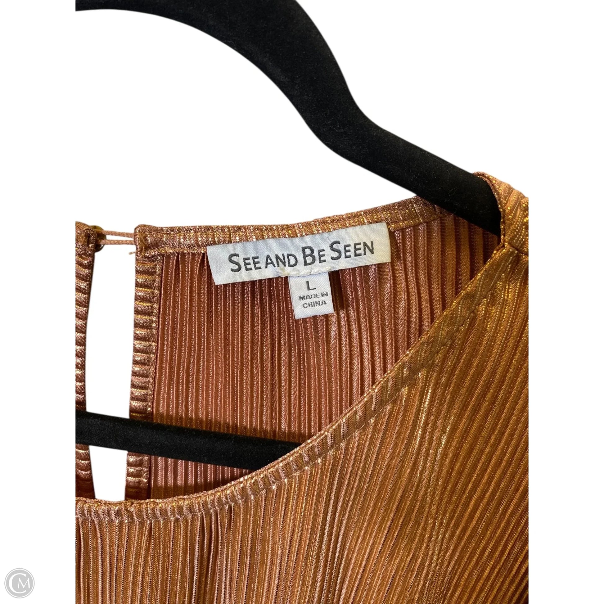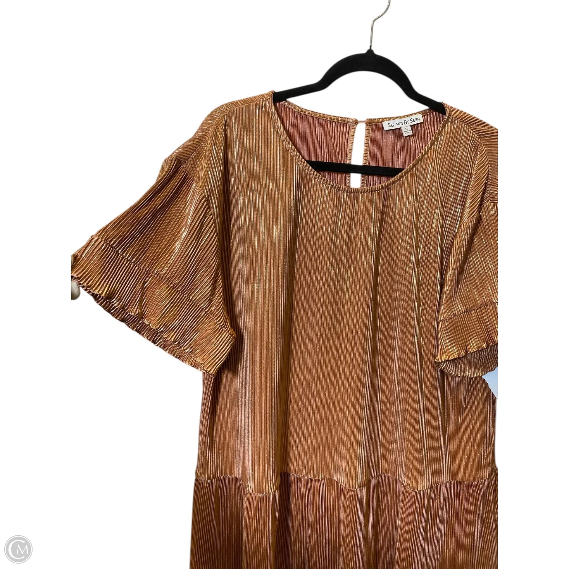 Shimmer in style with this gold casual dress by See And Be Seen, size L.