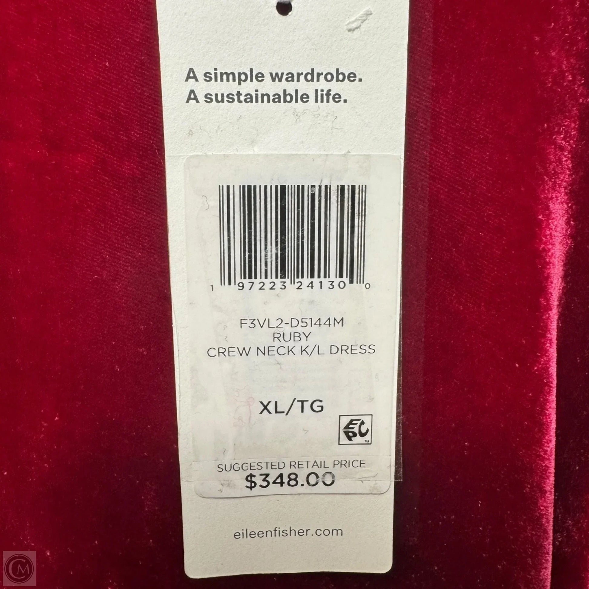 Silk Blend Velvet Ruby Crew Neck Dress By Eileen Fisher In Red, Size: XL