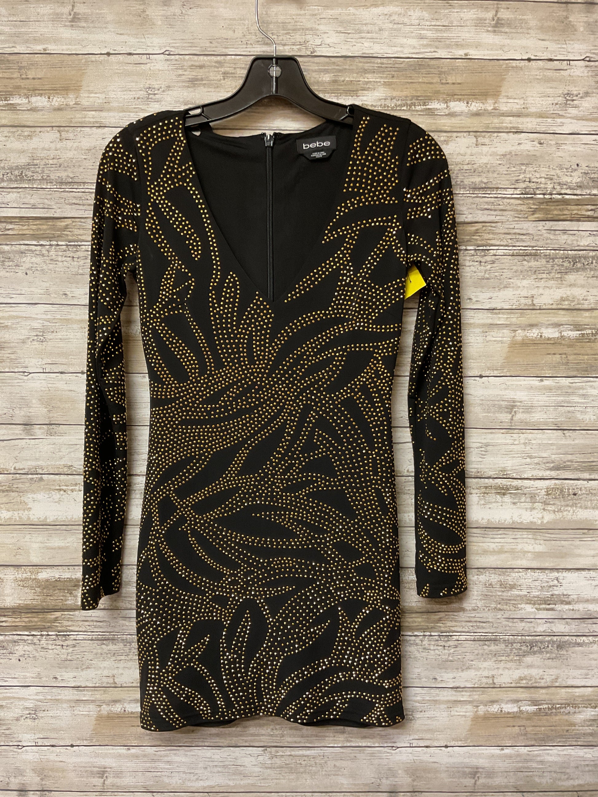 Dress Party Short By Bebe In Black & Gold, Size:Xs