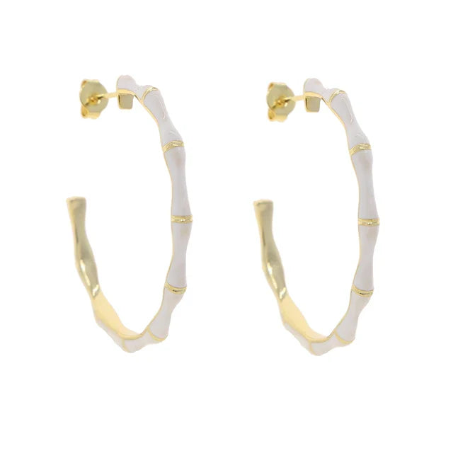 New SUMMER Colorful Women Jewelry 1.5 inch Bamboo Circle Hoop Enamel WHITE