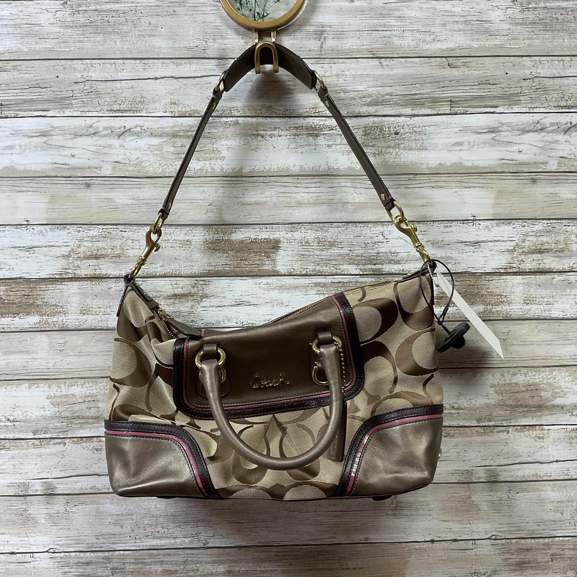 Handbag Designer By Coach In Brown & Pink, Size:Medium