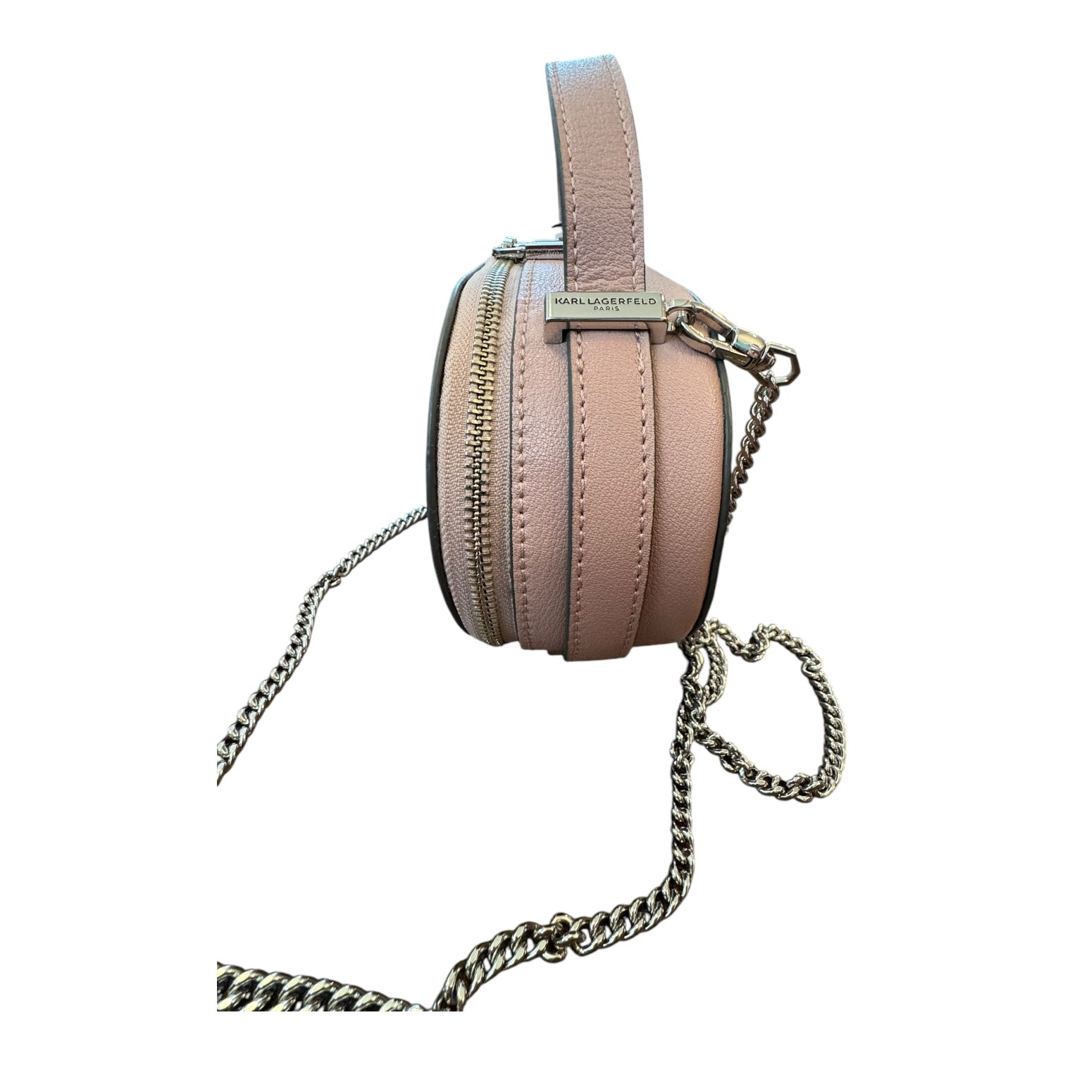 Karl Lagerfeld's mauve small handbag exudes timeless elegance with exquisite craftsmanship and sophisticated charm.
