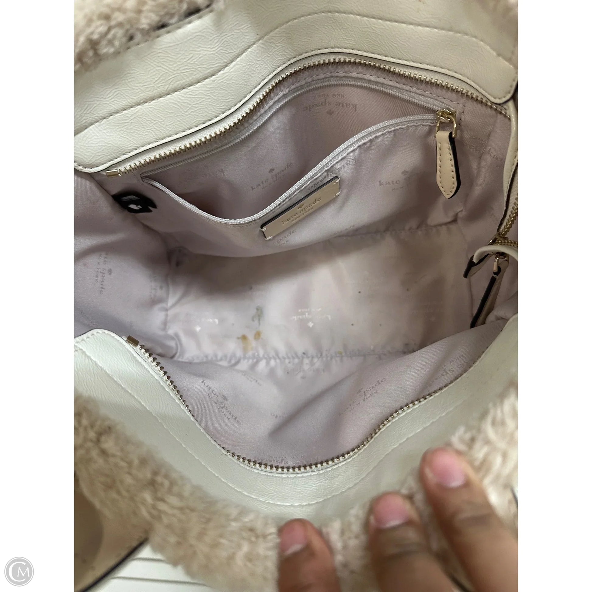 Other Info: JETT FAUX SHEARLING SMALL TOTE $348 AS IS Spots