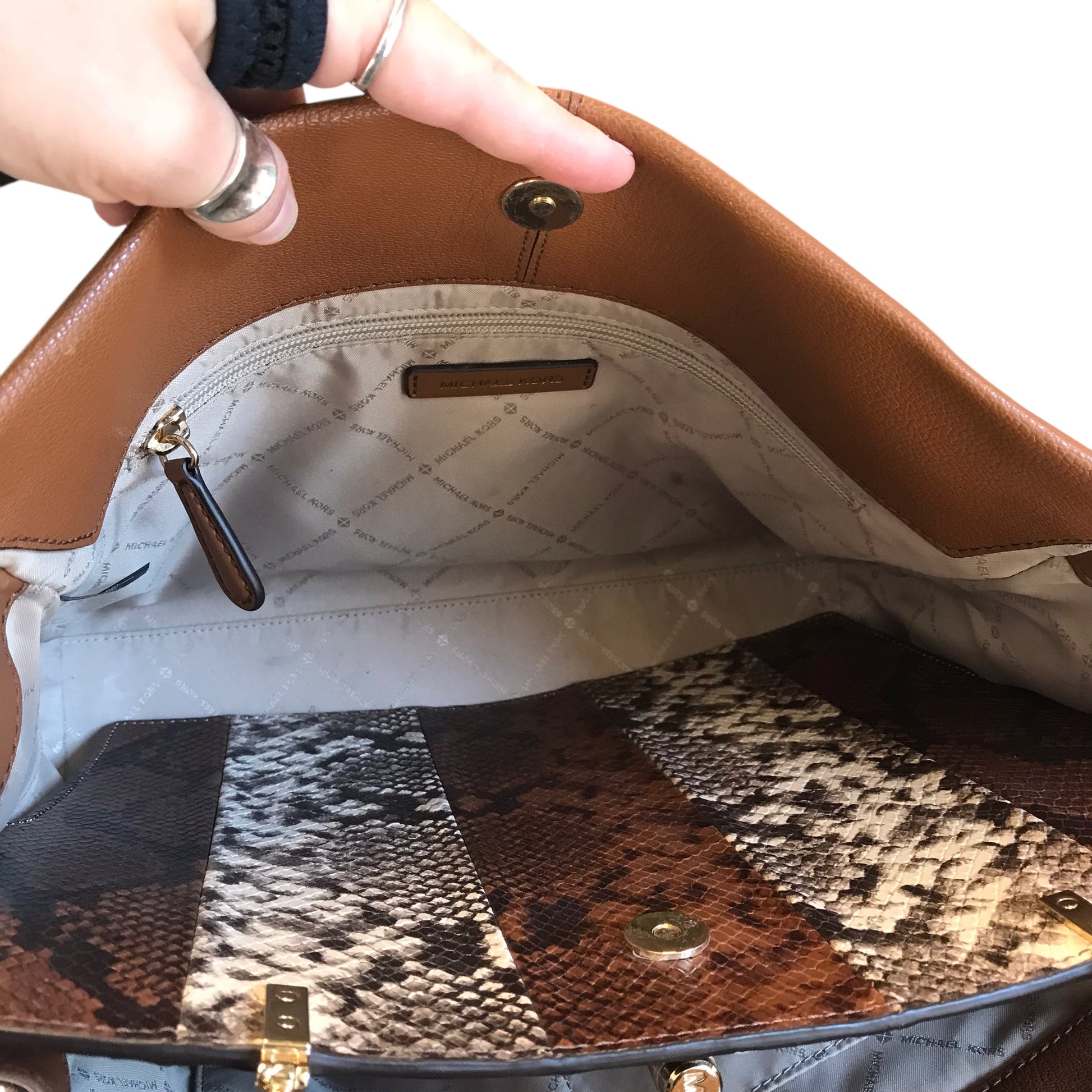 Handbag Designer By Michael Kors In Brown, Size:Medium
