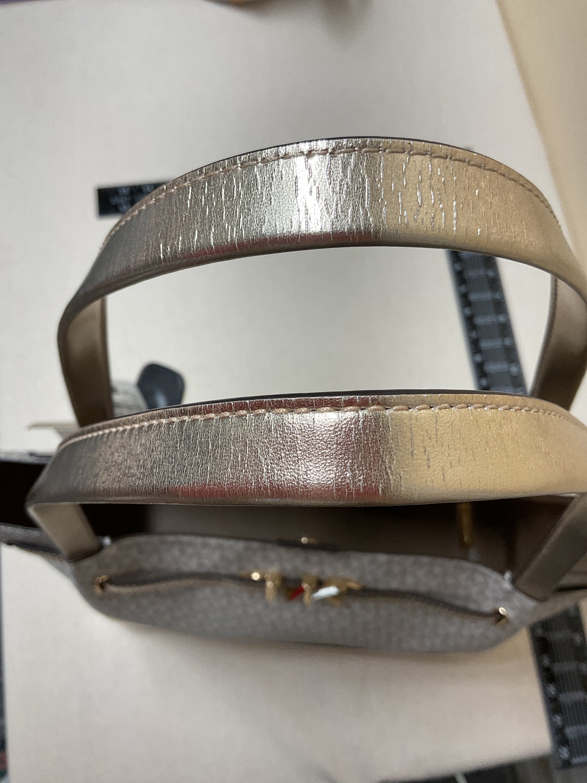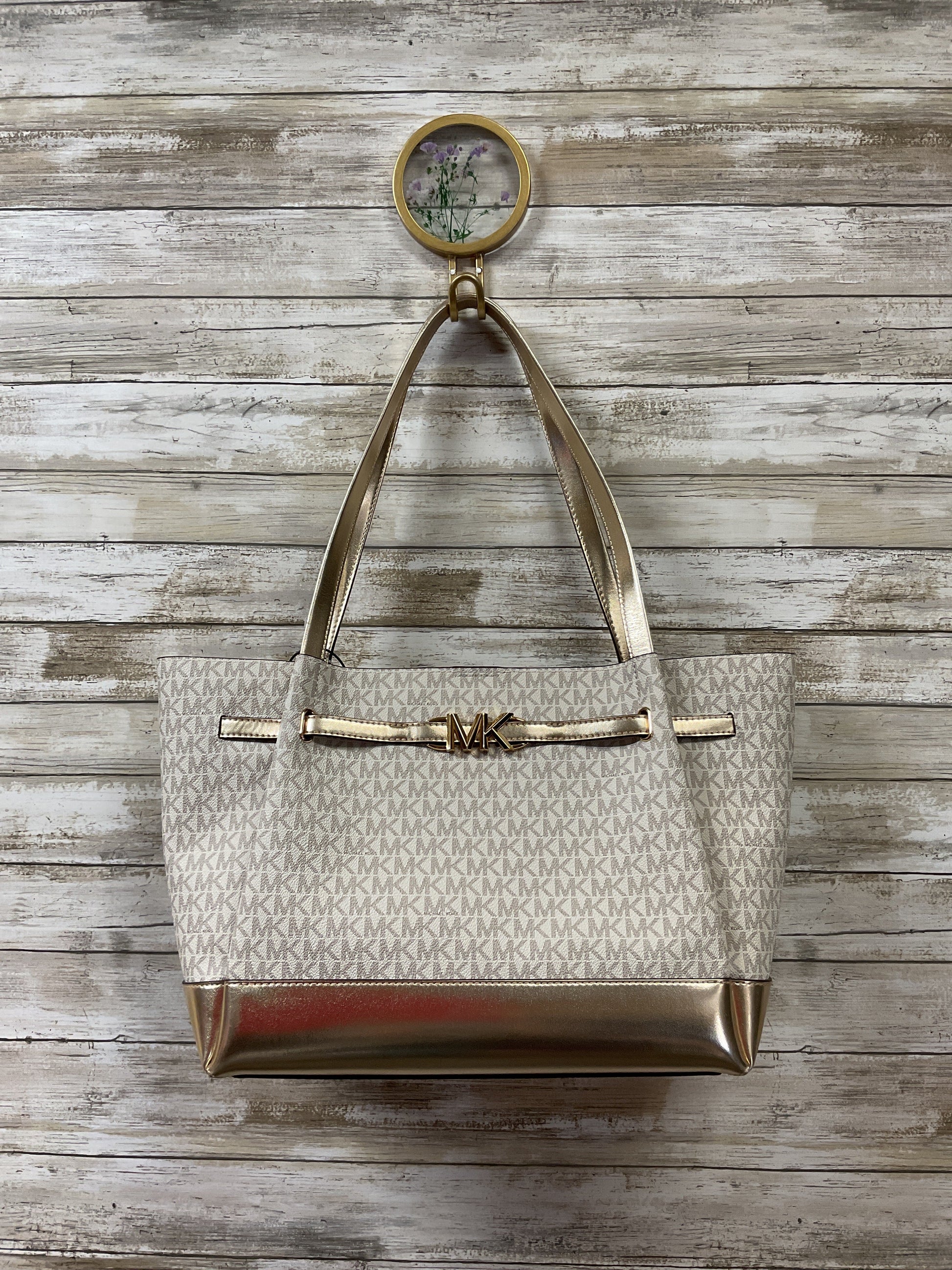 Handbag Designer By Michael Kors In Gold & White, Size:Large