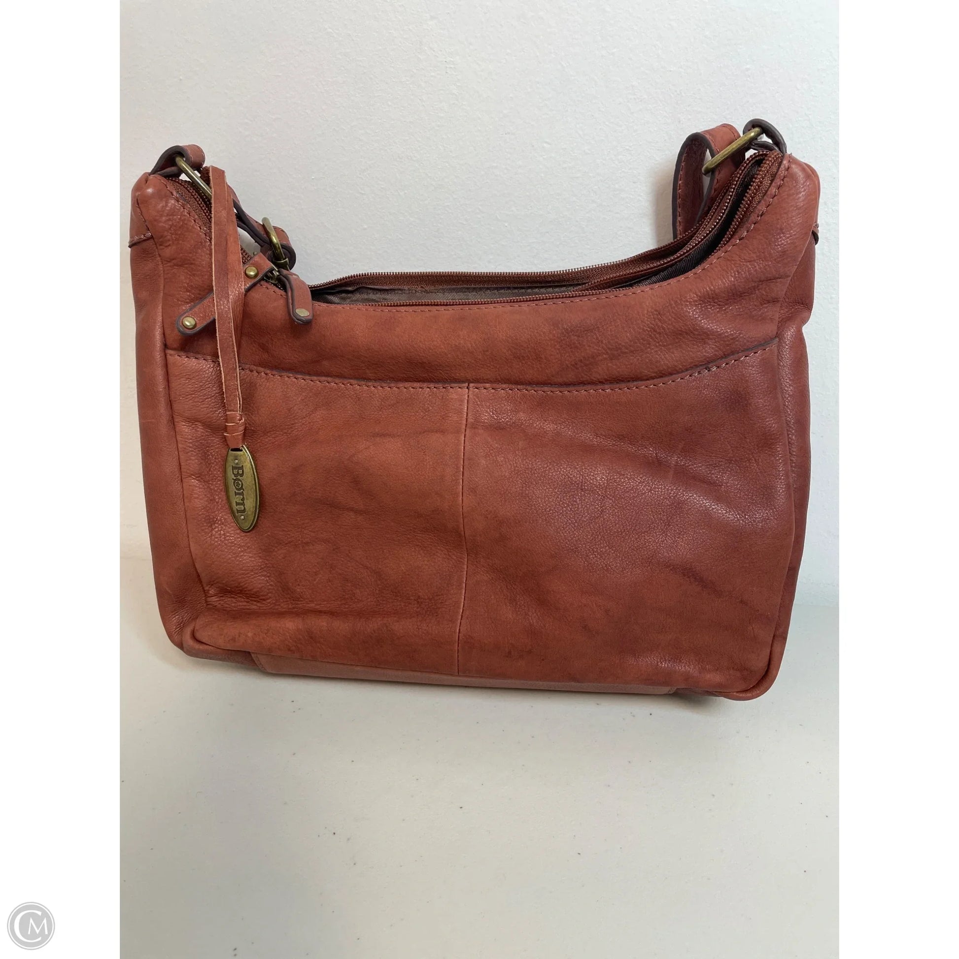 Handbag Leather By Born, Size: Medium