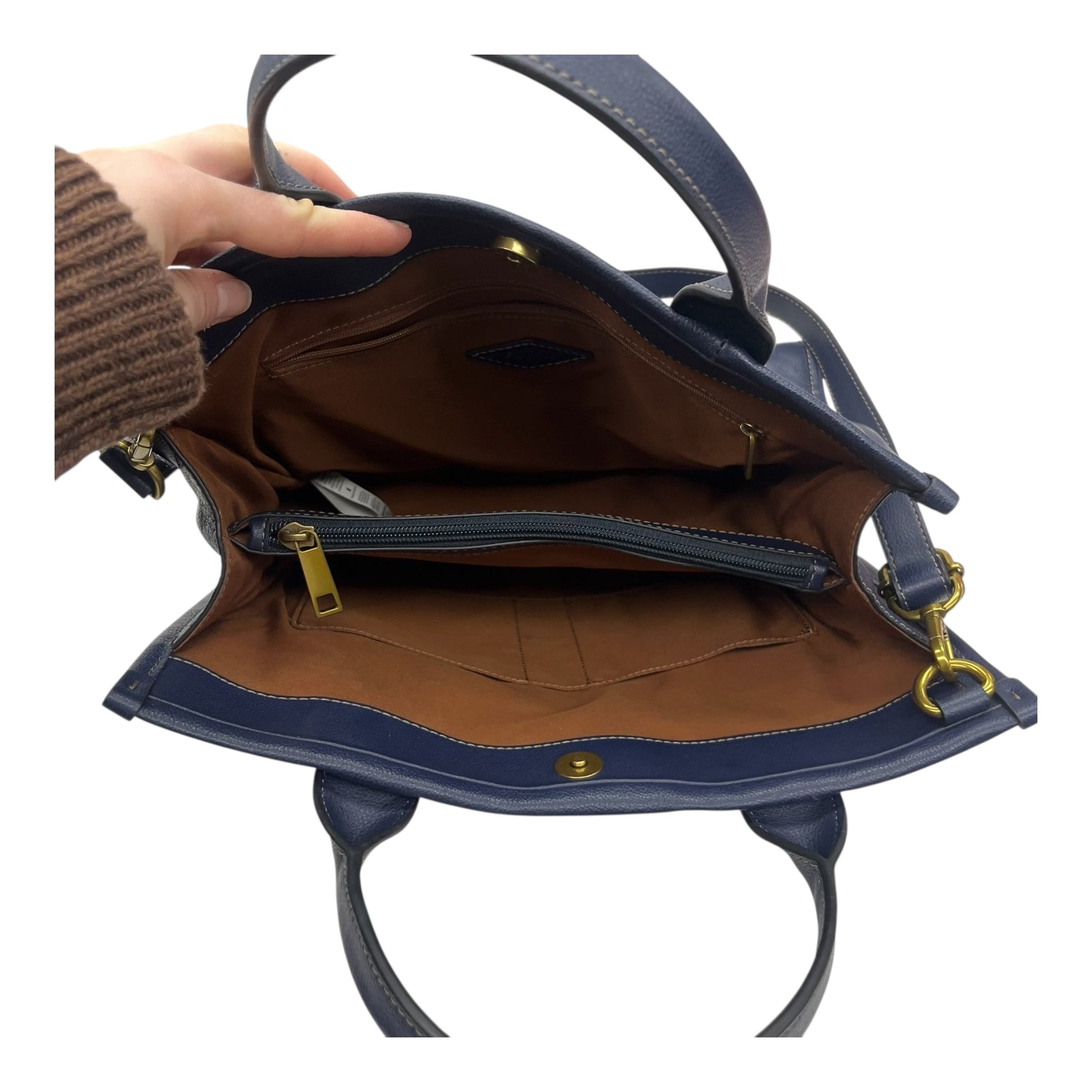 Handbag Leather By Fossil In Blue, Size:Medium