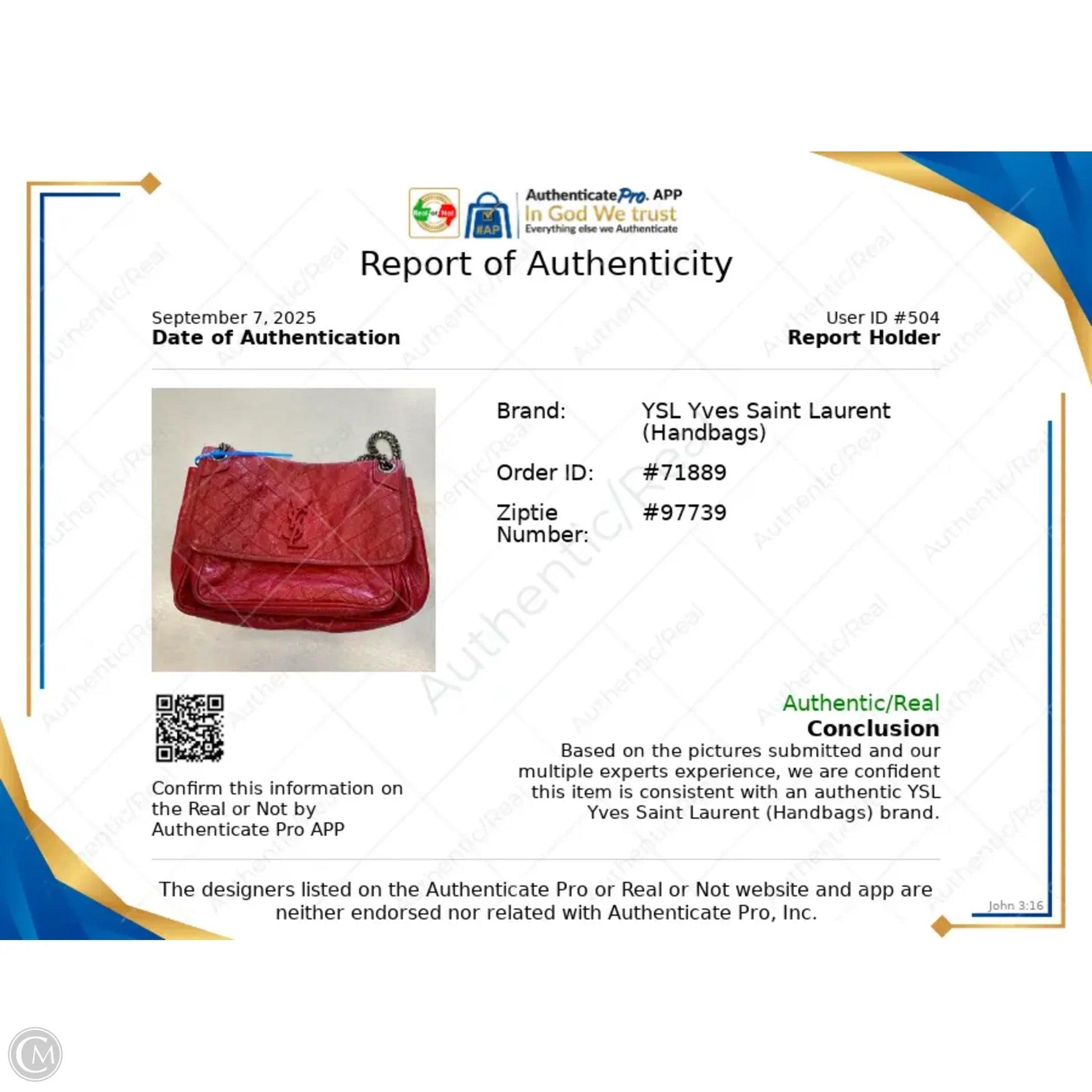 Handbag Luxury Designer By Yves Saint Laurent, Size: Medium