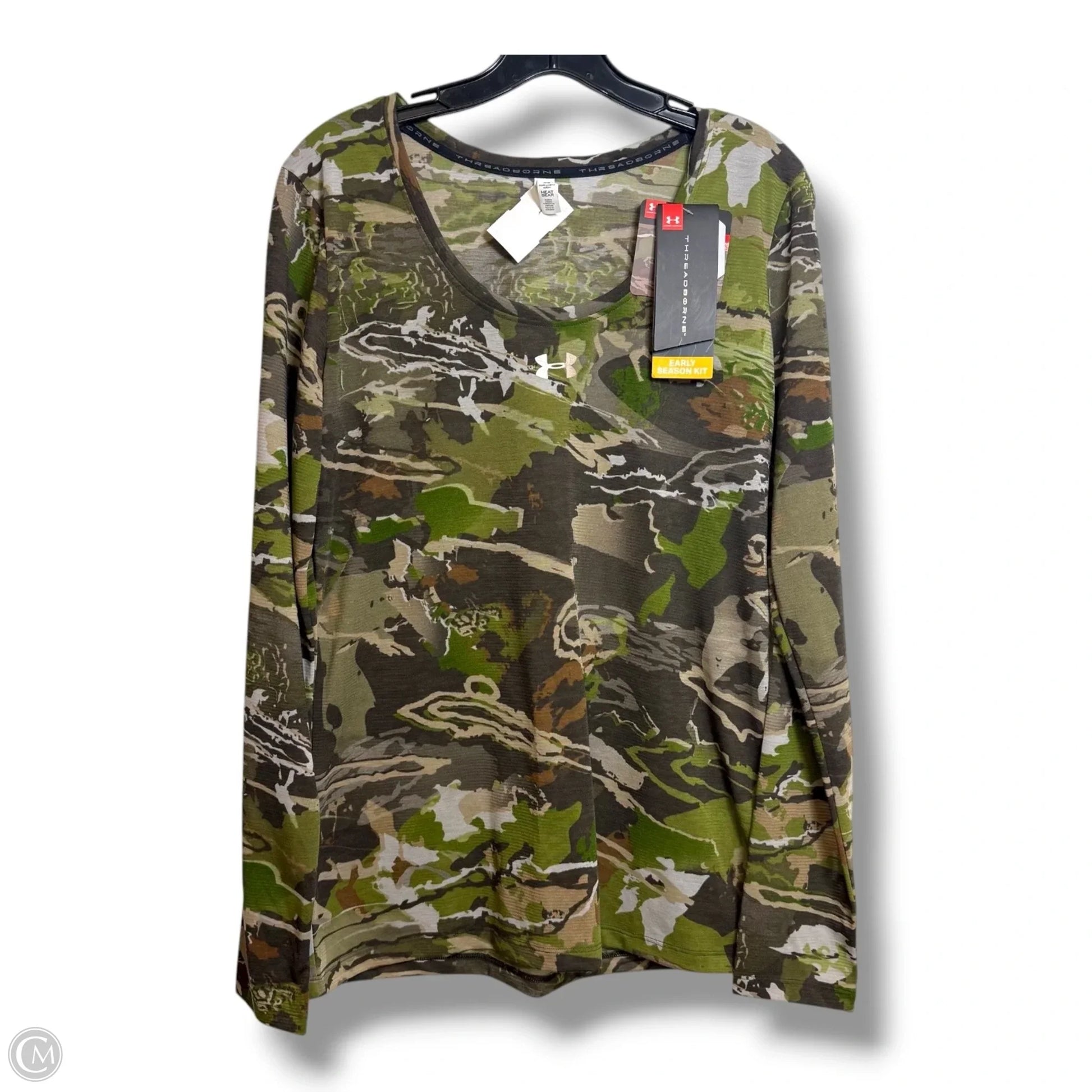 Heat gear Top Long Sleeve By Under Armour In Camouflage Print, Size: M