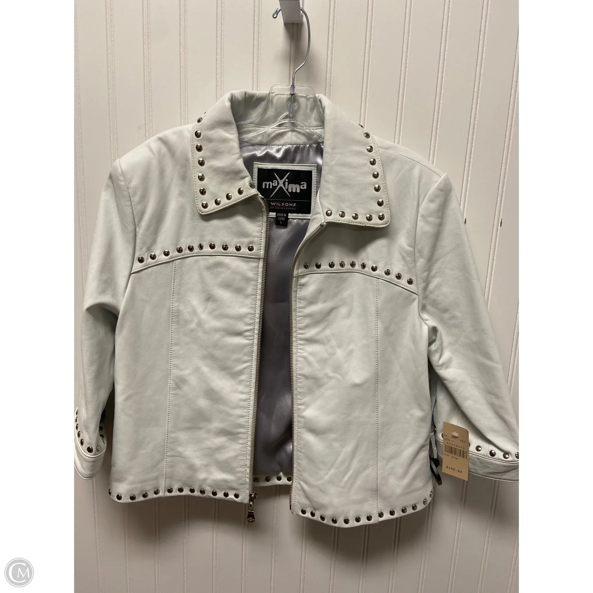 Jacket Leather By Clothes Mentor In White, Size: L