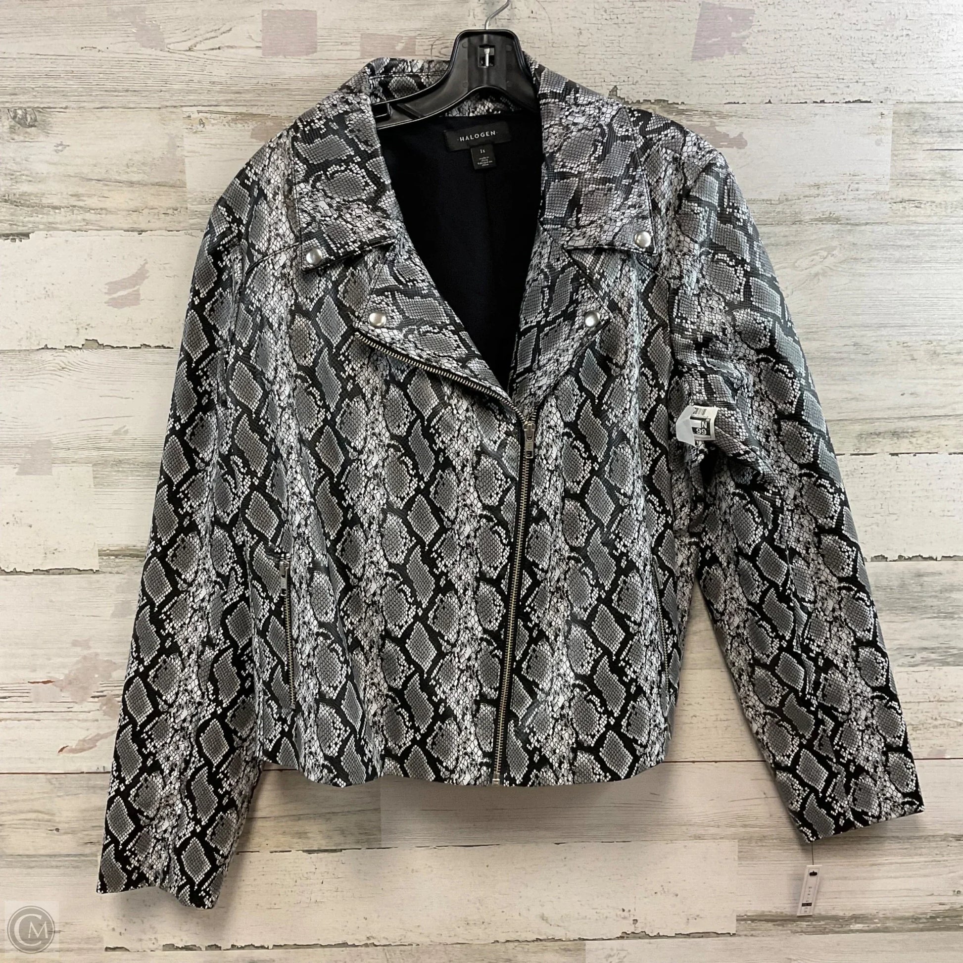 Jacket Moto By Halogen In Snakeskin Print, Size: 1x