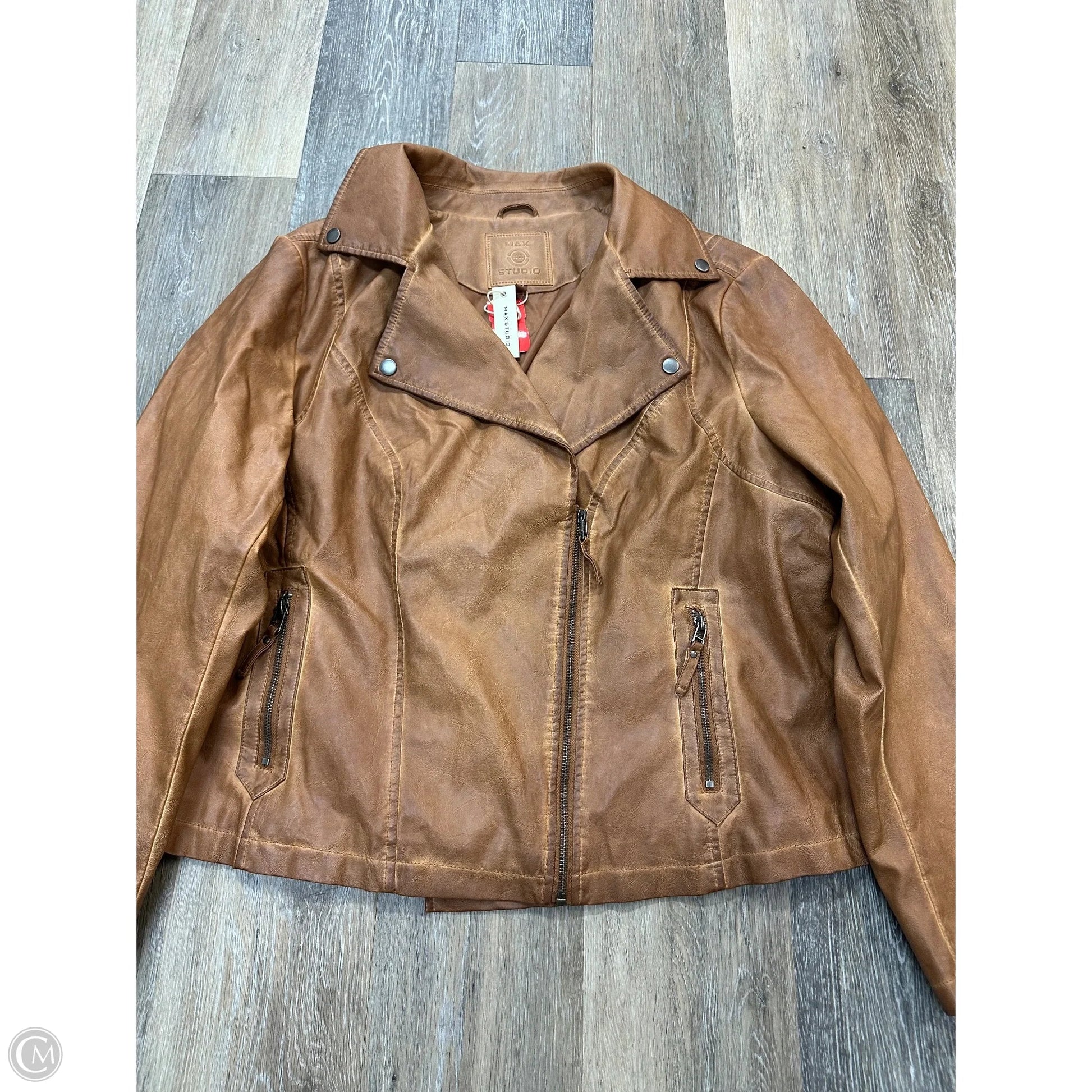 Jacket Moto By Max Studio In Tan, Size: 2x