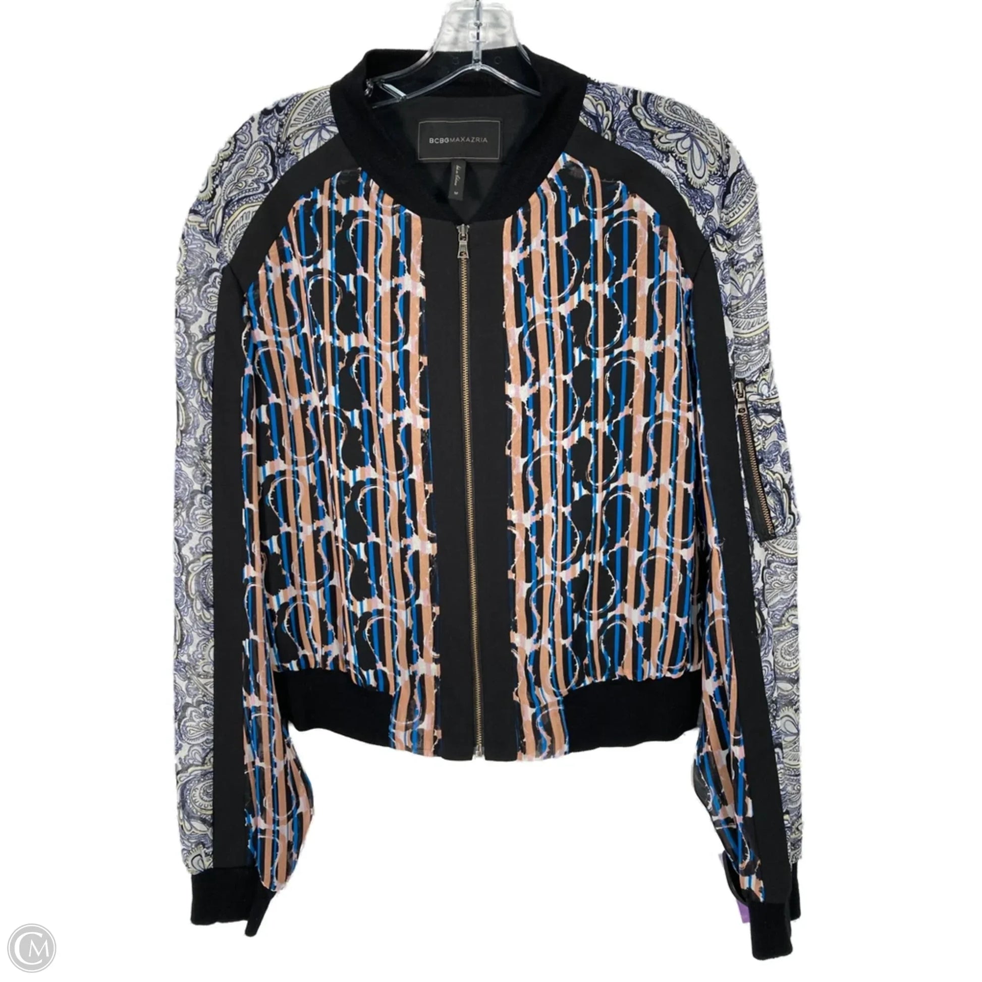 Sophisticated jacket by BCBGMAXAZRIA in black & brown, size M, exuding timeless elegance and unmatched quality.