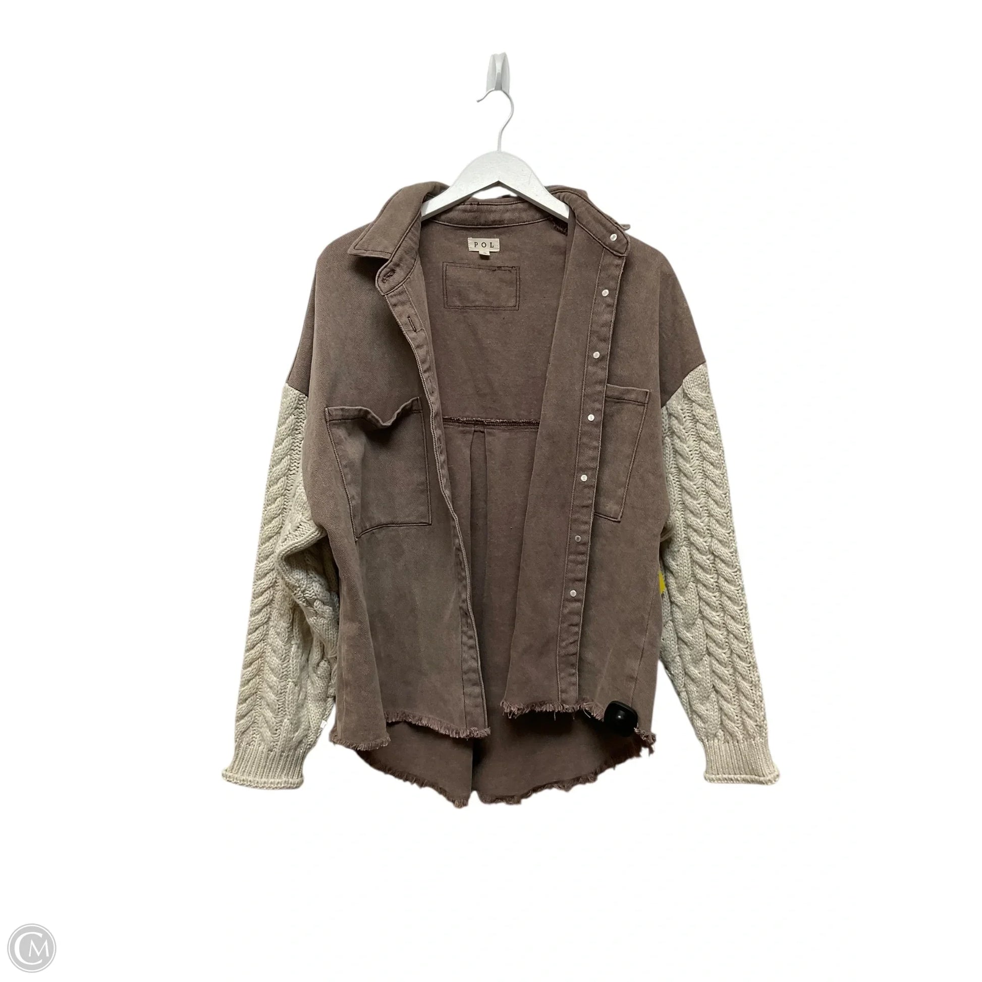 Jacket Shirt By Pol In Brown, Size: S