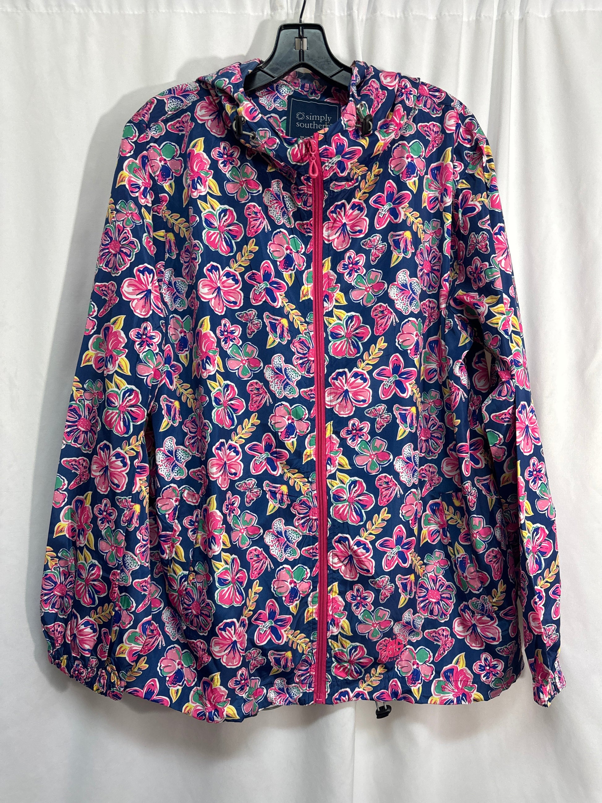 Jacket Windbreaker By Simply Southern In Blue, Size: Xxl