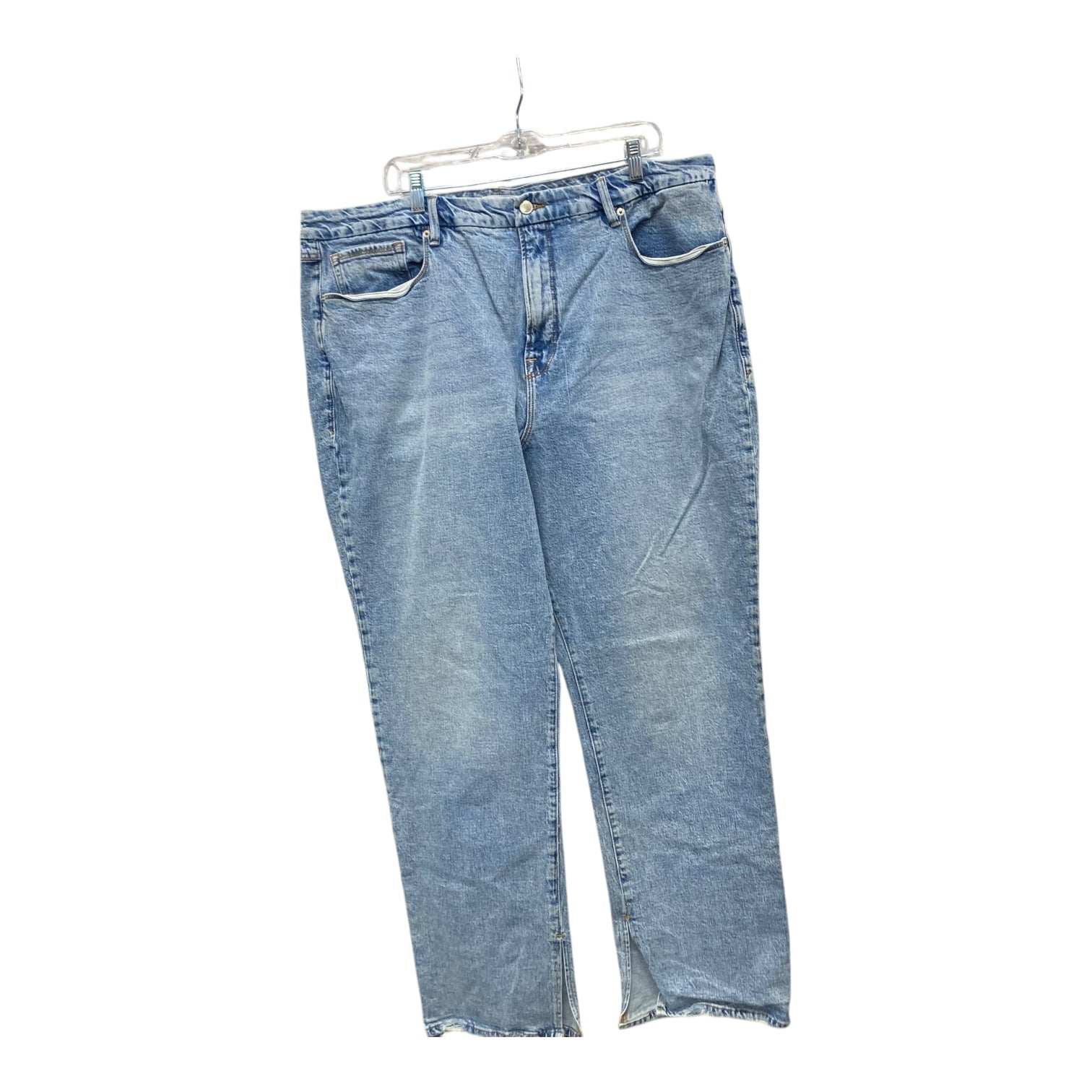 Elevate your wardrobe with these exquisite Good American boot-cut jeans in classic blue denim, size 22. Embrace timeless elegance.