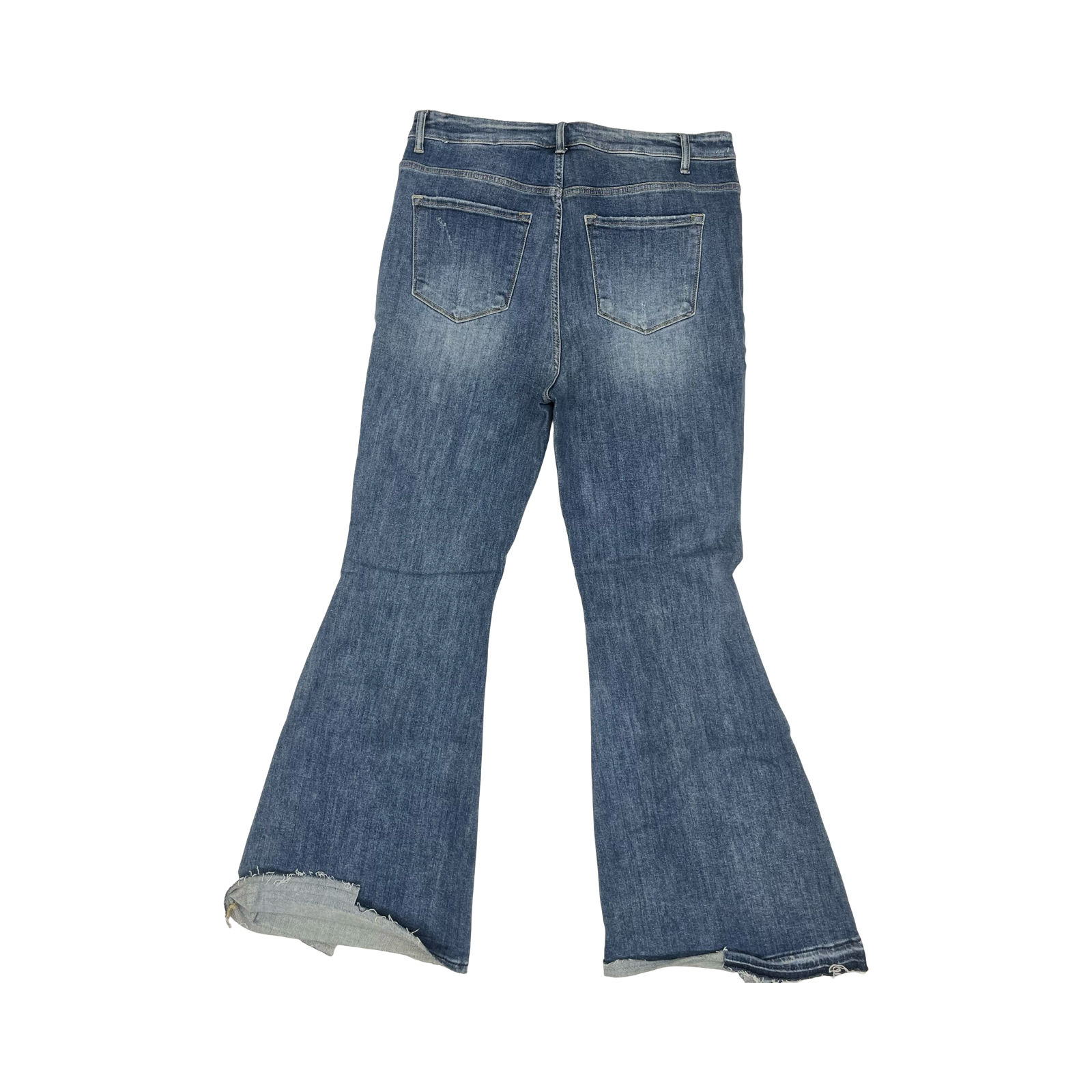 Risen Blue Denim Flared Jeans in Size 1X: Embrace bold style with flattering fit and comfort.