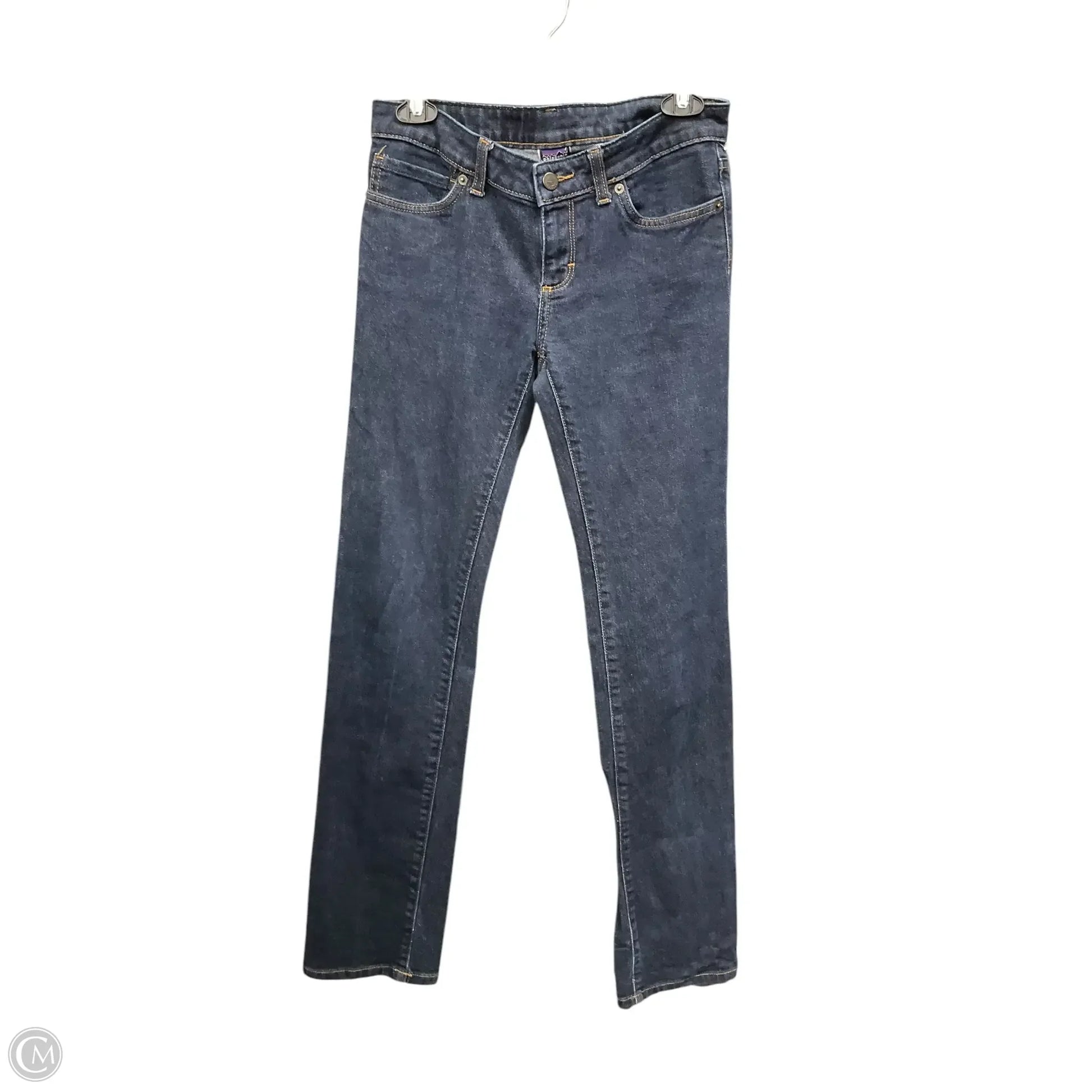 Patagonia's Straight Fit Jeans in Blue Denim, Size 2, offer durable comfort and a classic style. Crafted with quality fabric, perfect for versatile daily wear.