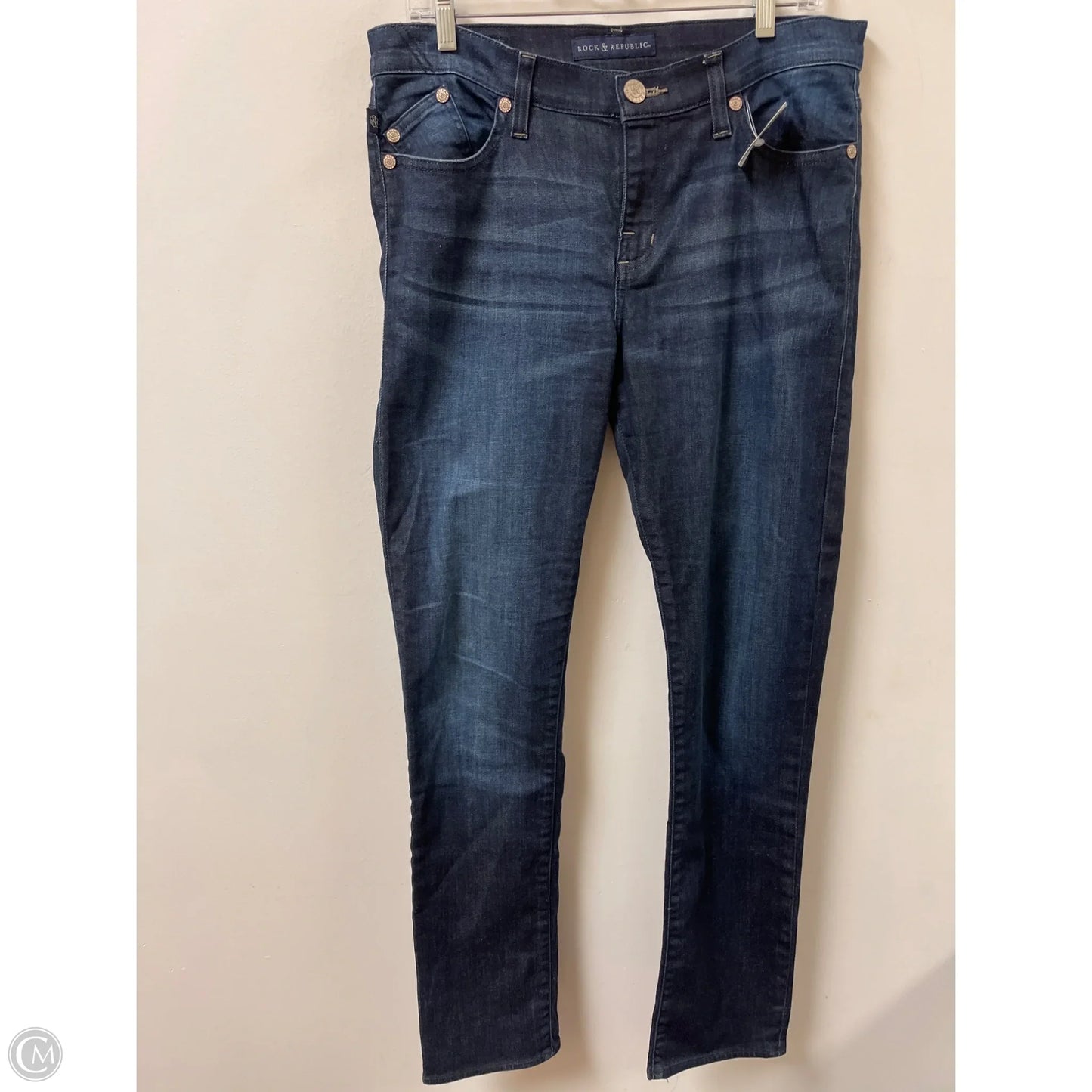Jeans Straight By Rock And Republic In Blue Denim, Size: 14