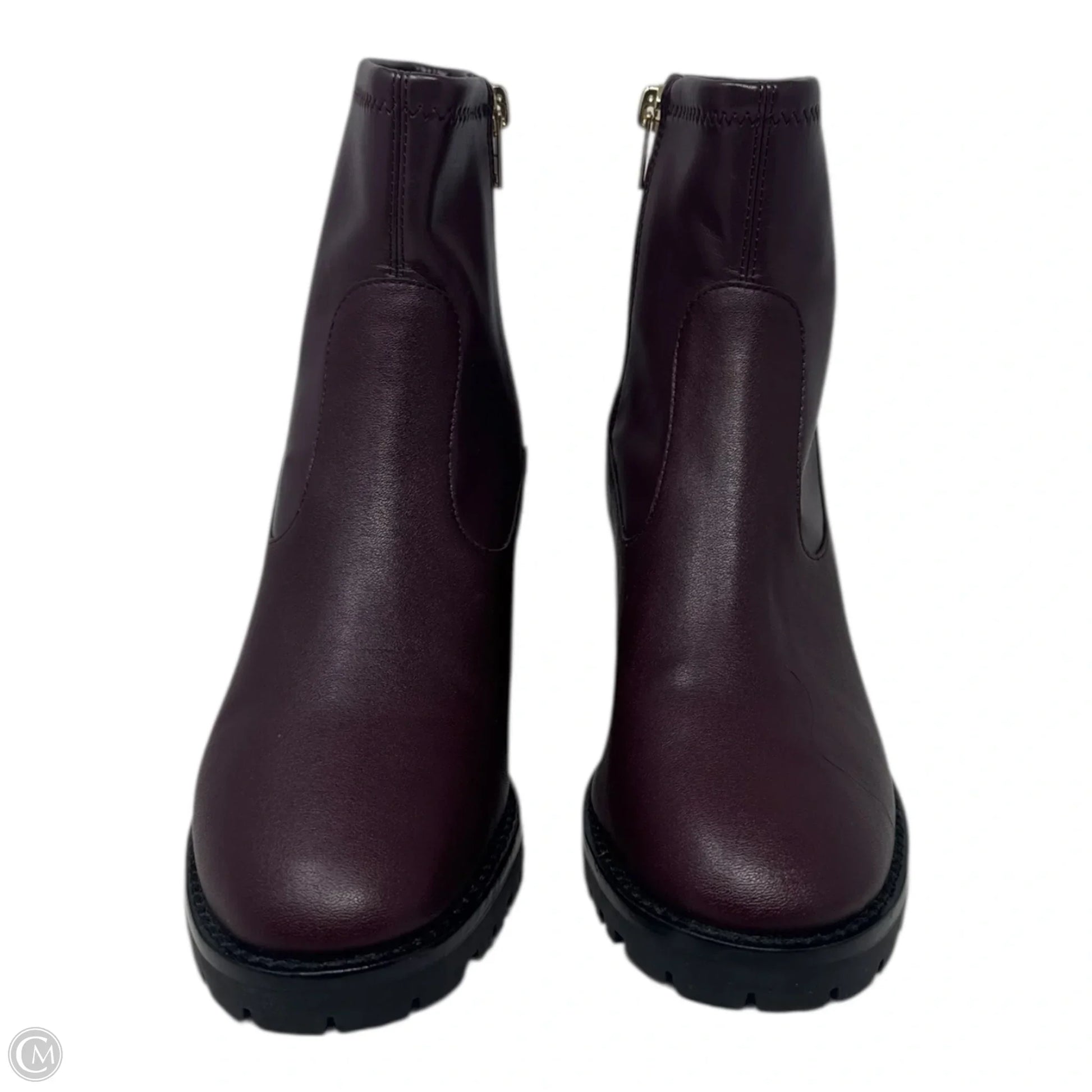 Joy Leather Boots Designer By Coach In Maroon, Size: 6.5
