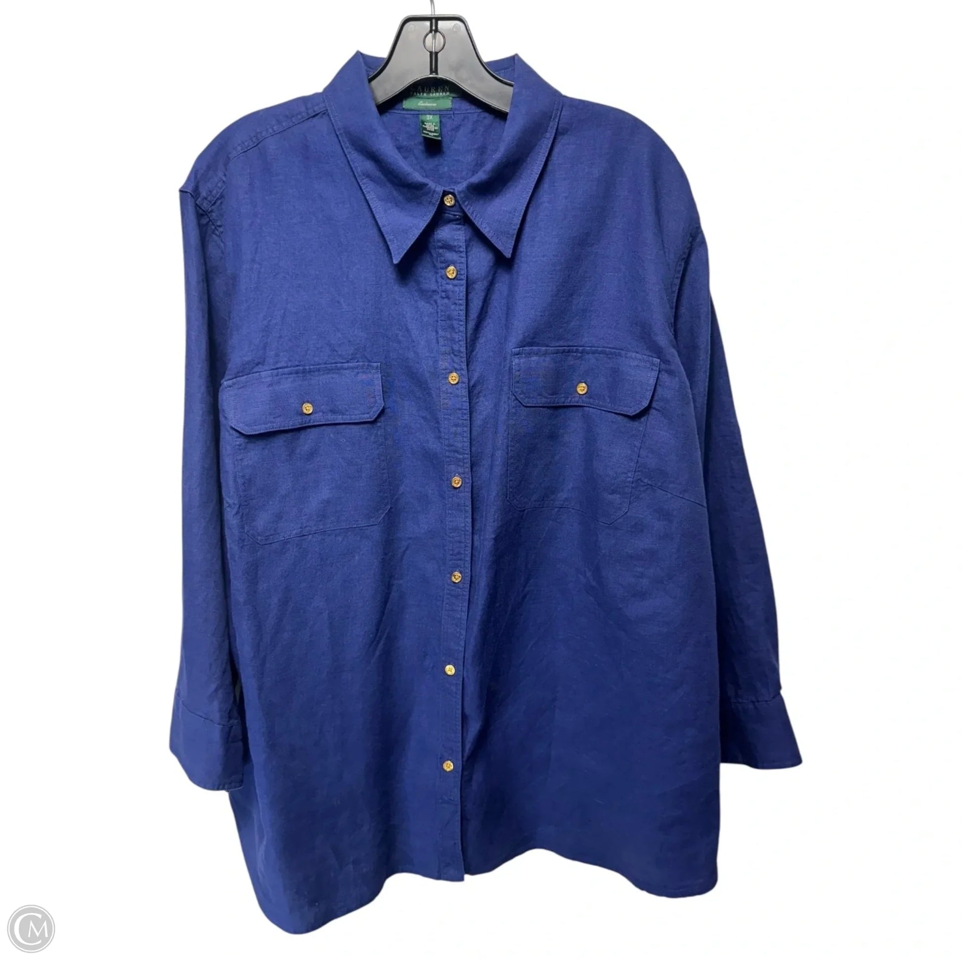 Linen Top Long Sleeve By Lauren By Ralph Lauren In Blue, Size: 3x