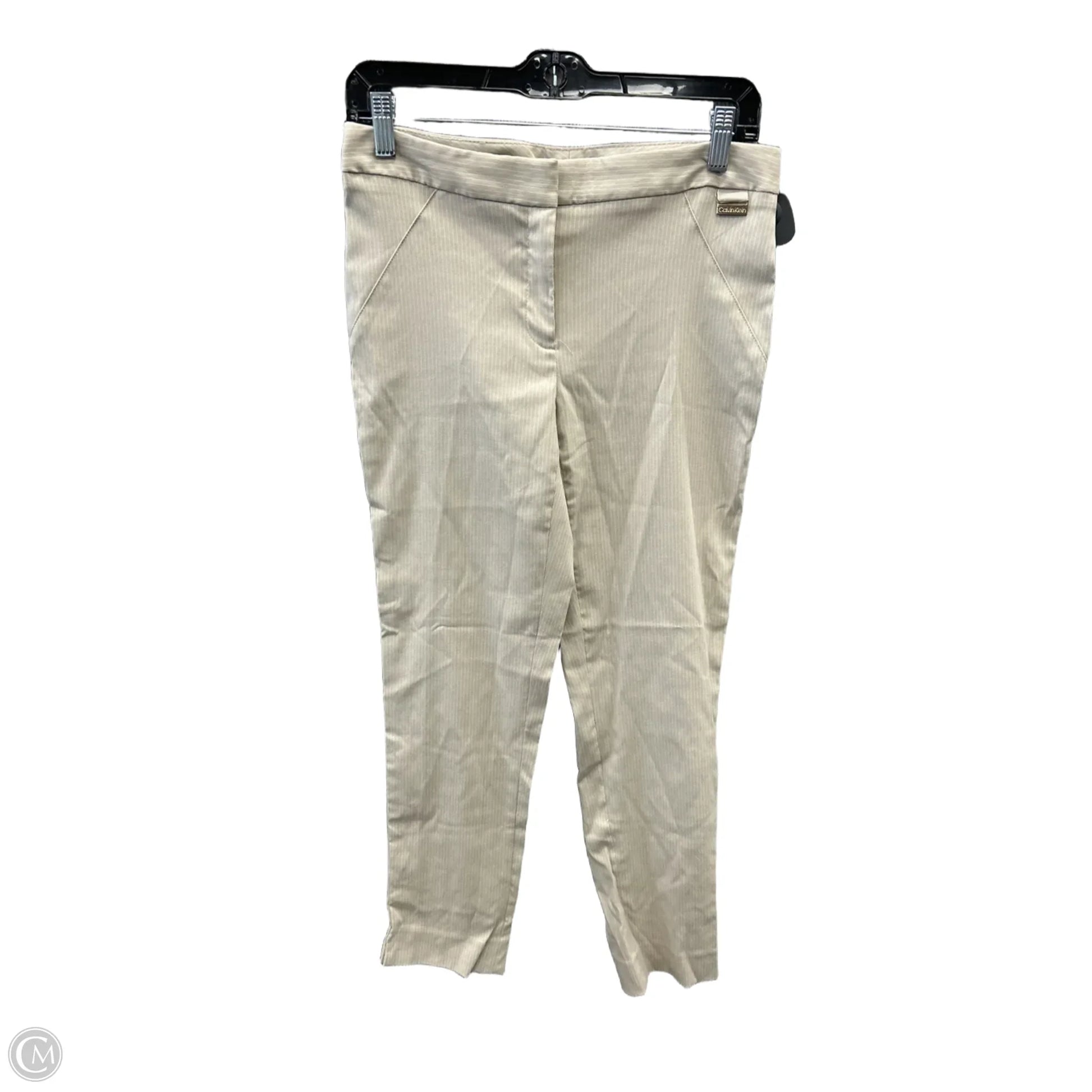 Calvin Klein Beige Pants, Size 4: Embrace effortless sophistication with these tailored trousers. Crafted in luxe fabric, they exude timeless elegance for any occasion.