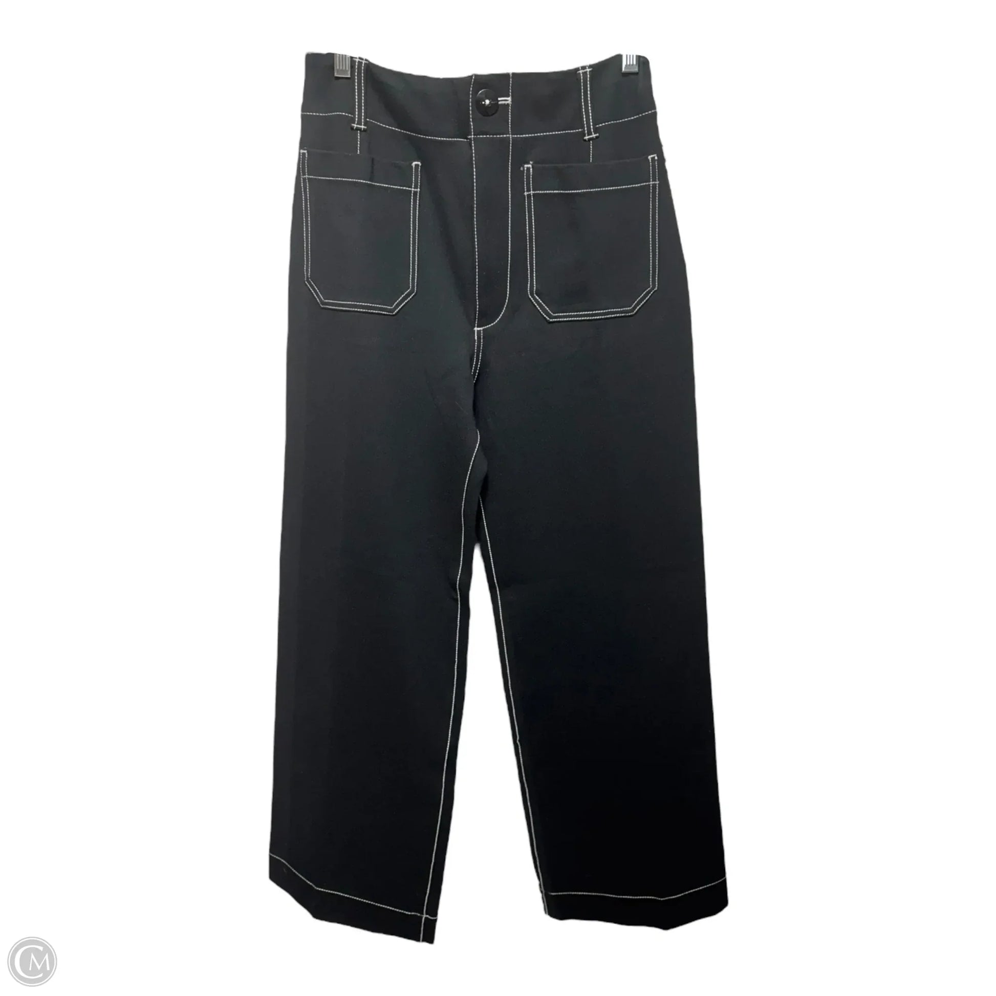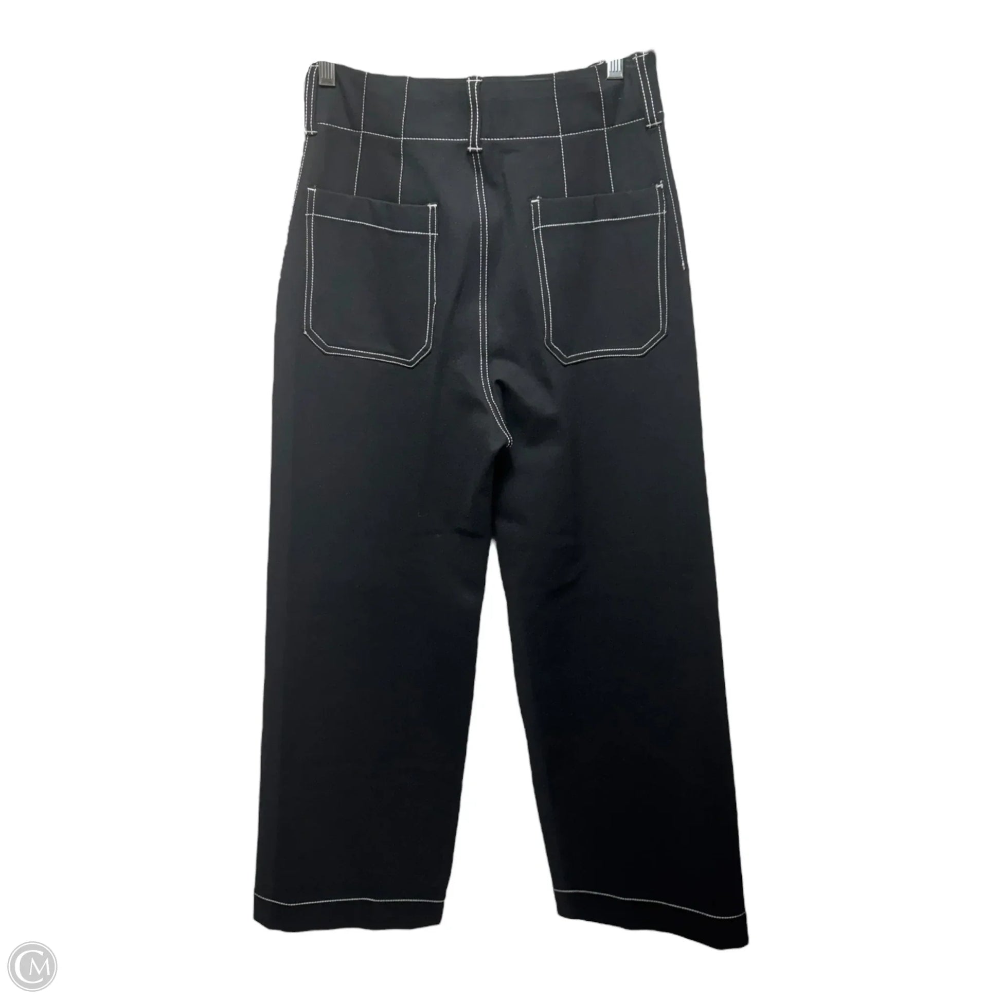 The Colette Contrast-Stitch Linen Crop Wide-Leg Pants By Maeve In Black & White, Size: 4/27 Tall