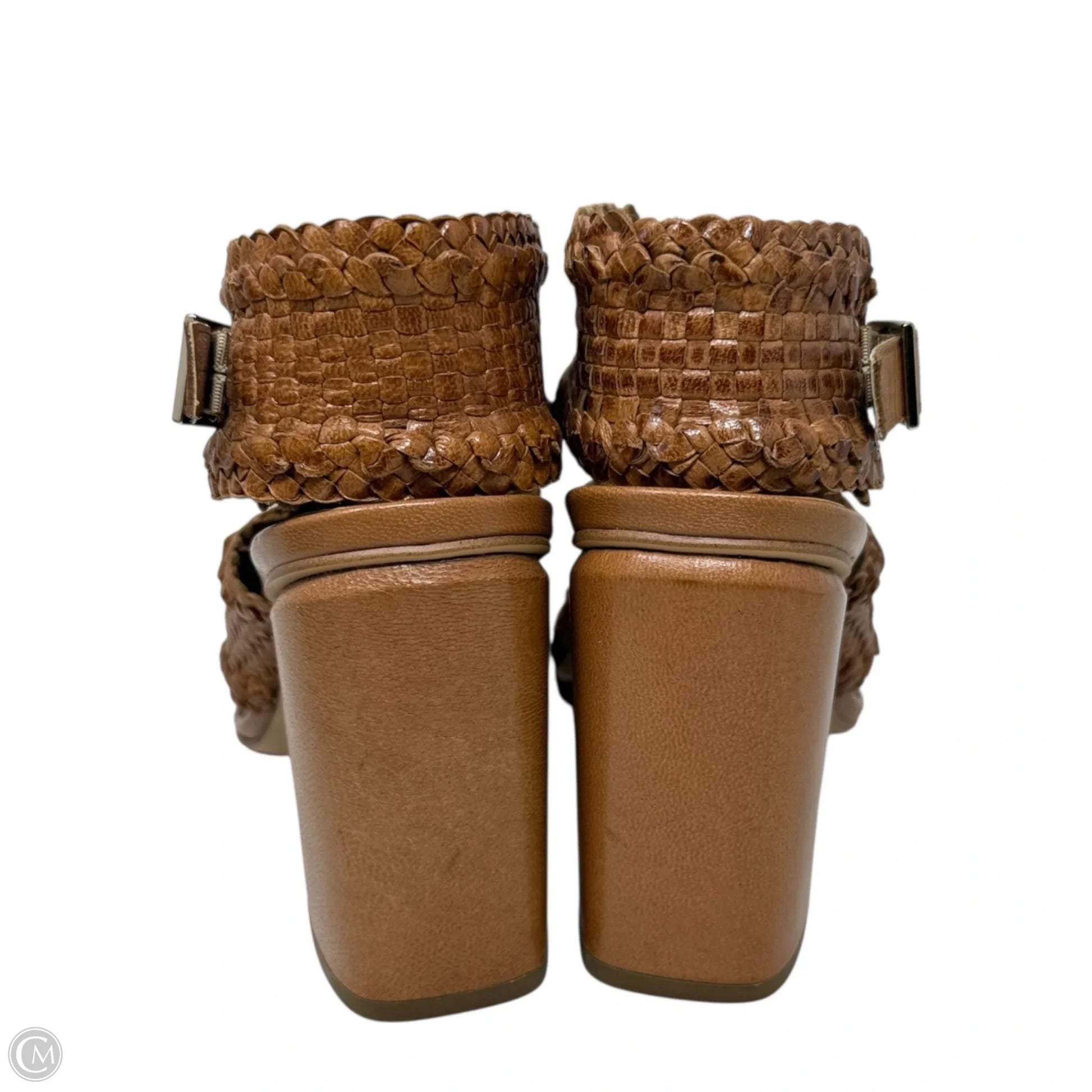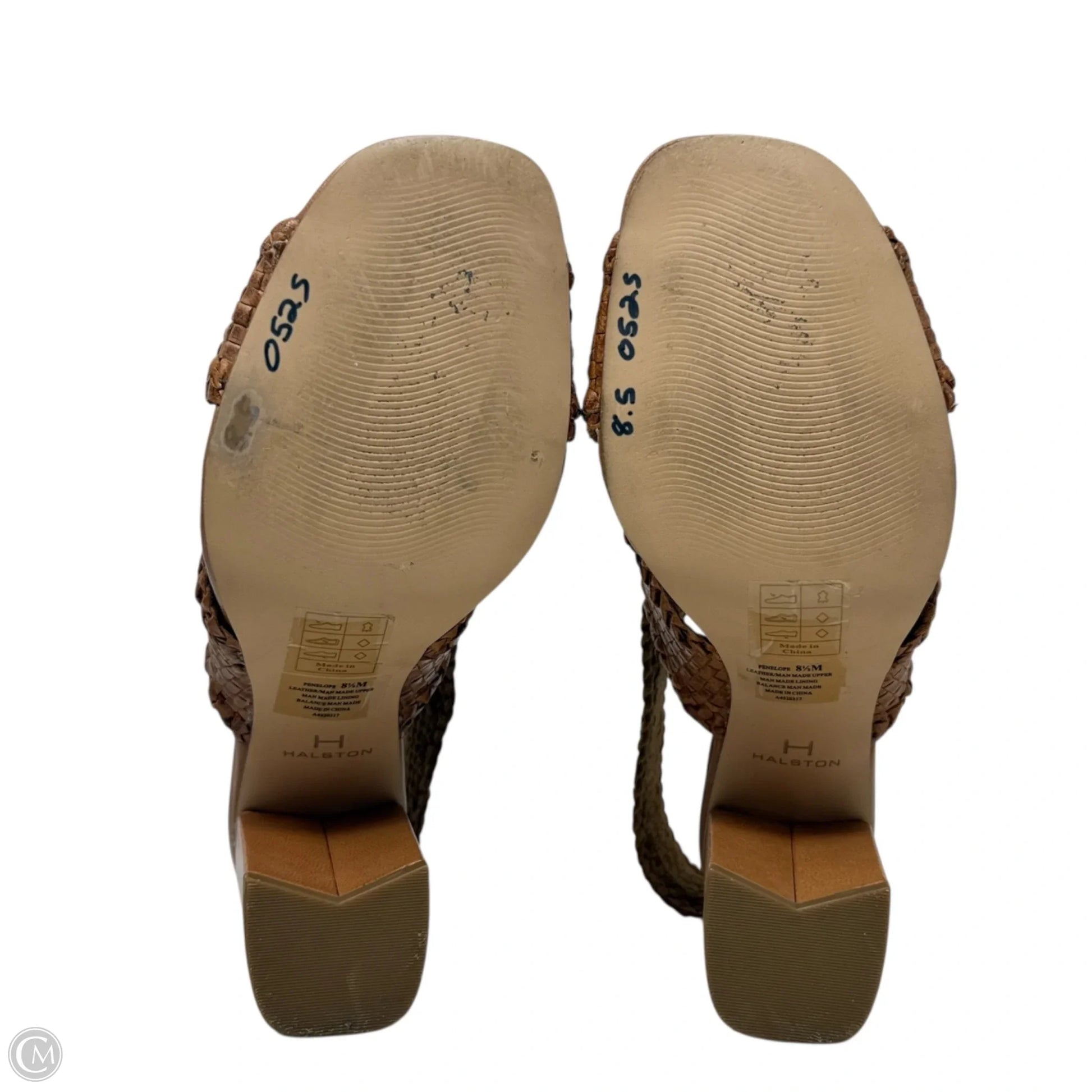Penelope Woven Leather Sandals By H For Halston In Tan, Size: 8.5