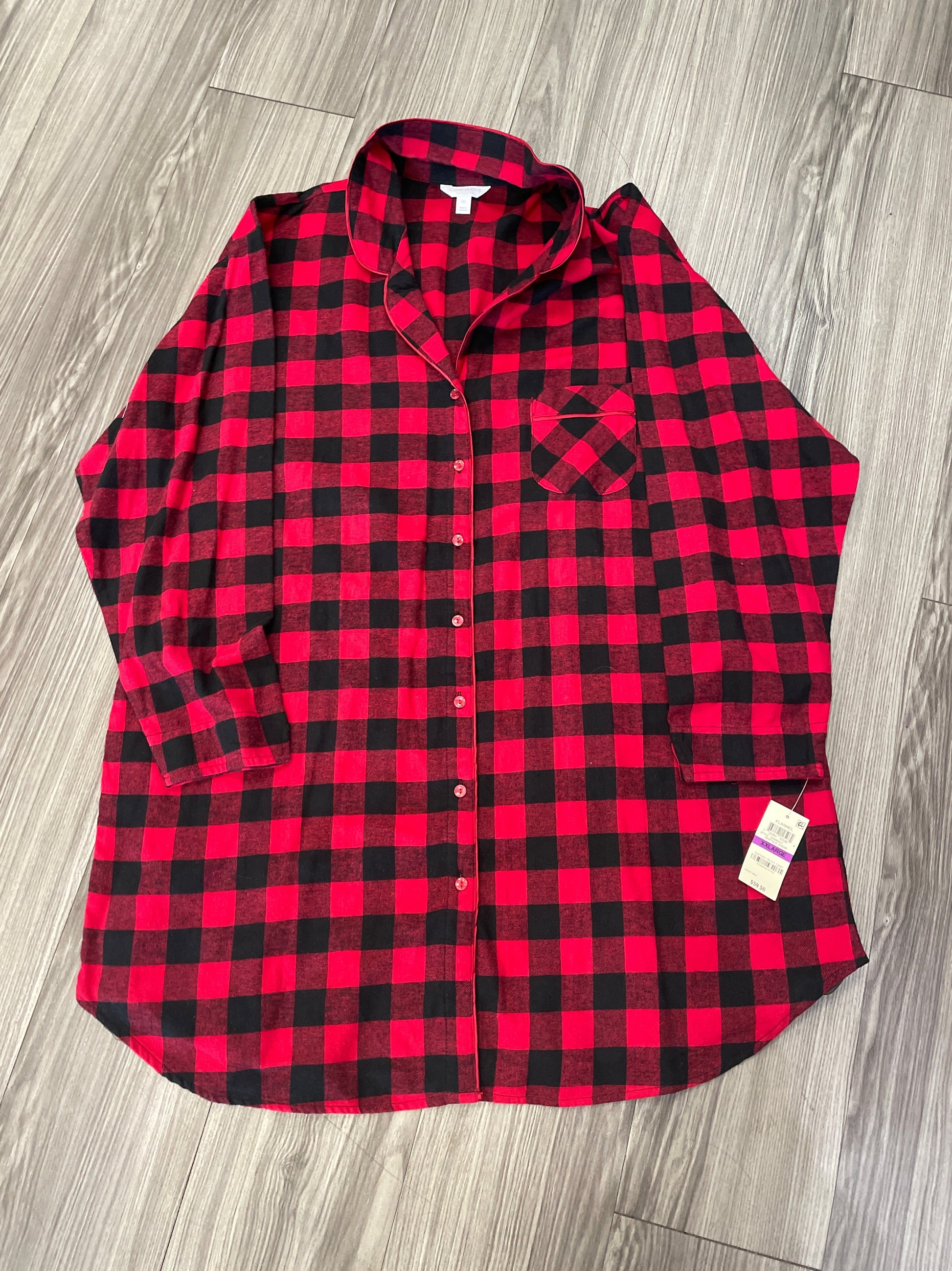 Plaid Pattern Top Long Sleeve Charter Club, Size Xxl