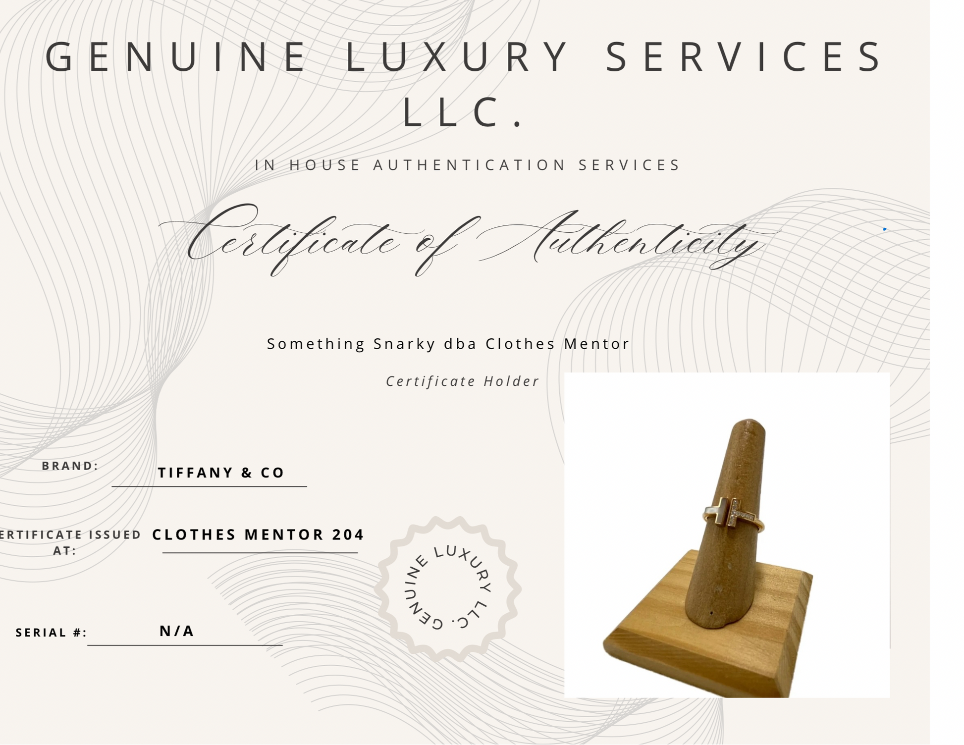 Other Info: 18K T-WIRE RING WITH DIAMONDS AND MOTHER OF PEARL INLAY $2900. CERTIFIED AUTHENTIC BY 3RD PARTY.