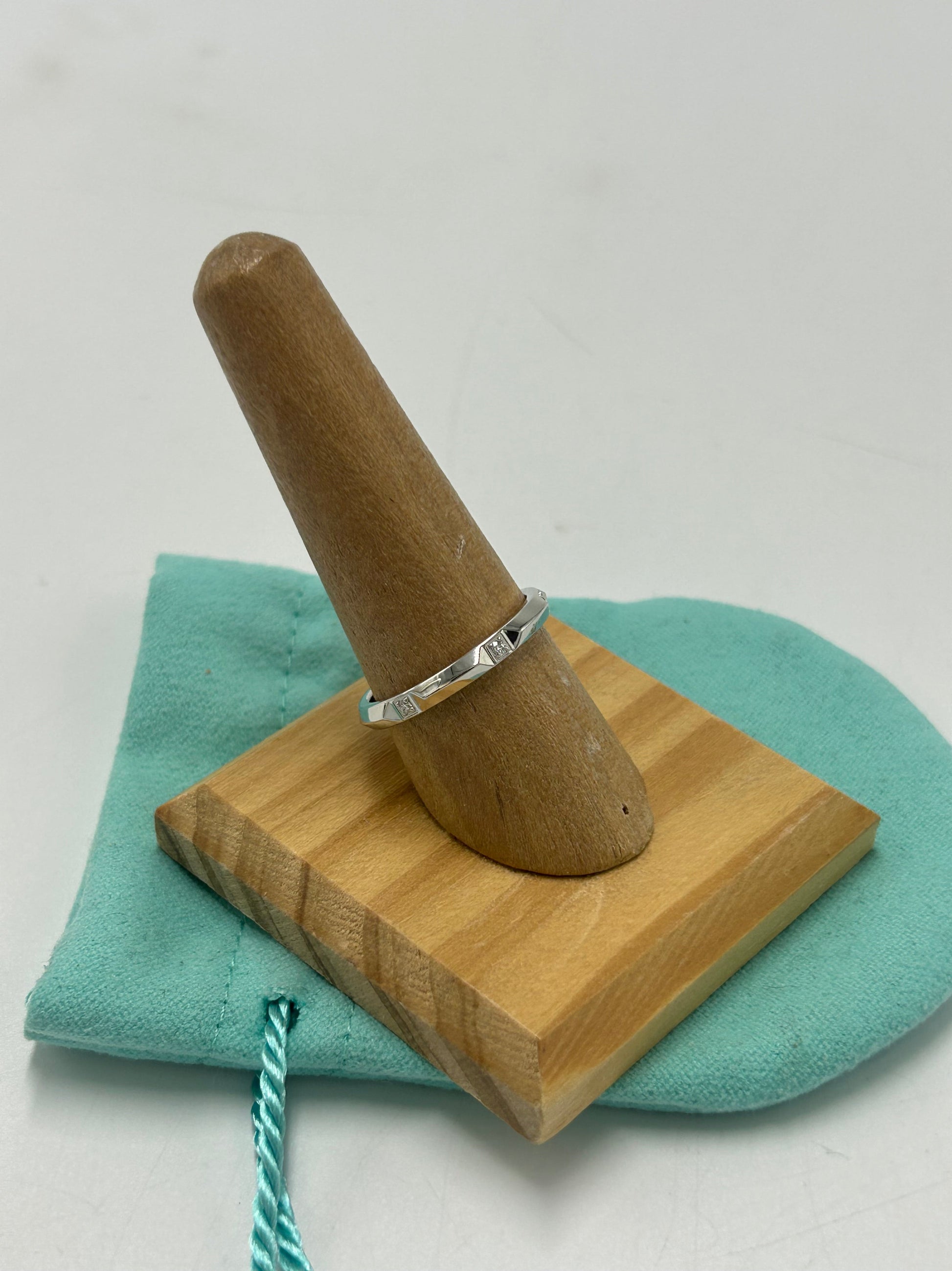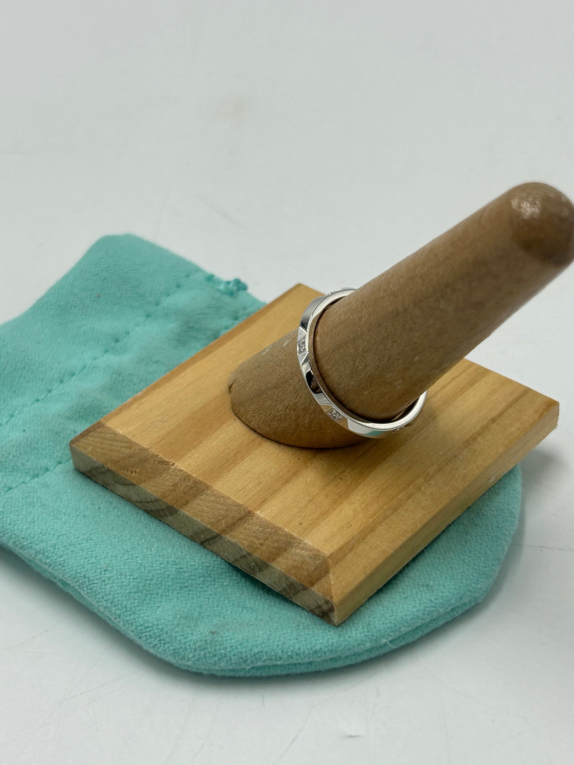 Other Info: TIFFANY TRUE BAND RING PLATINUM W/ DIAMONDS, RETAILS FOR $1750. Certified Authentic by 3rd Party, comes with the original duster.