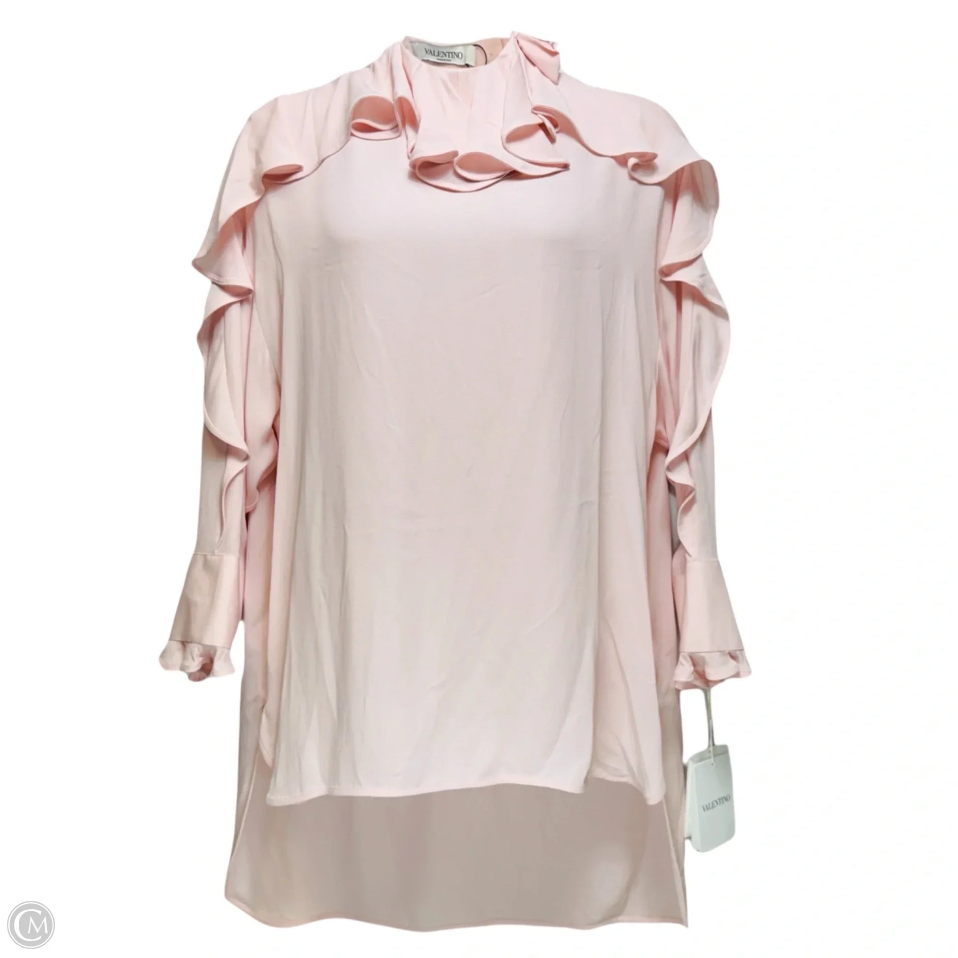 Ruffled Silk Crépe de Chine Mini Dress Luxury Designer By Valentino Garavani In Pink, Size: US 8/IT 44