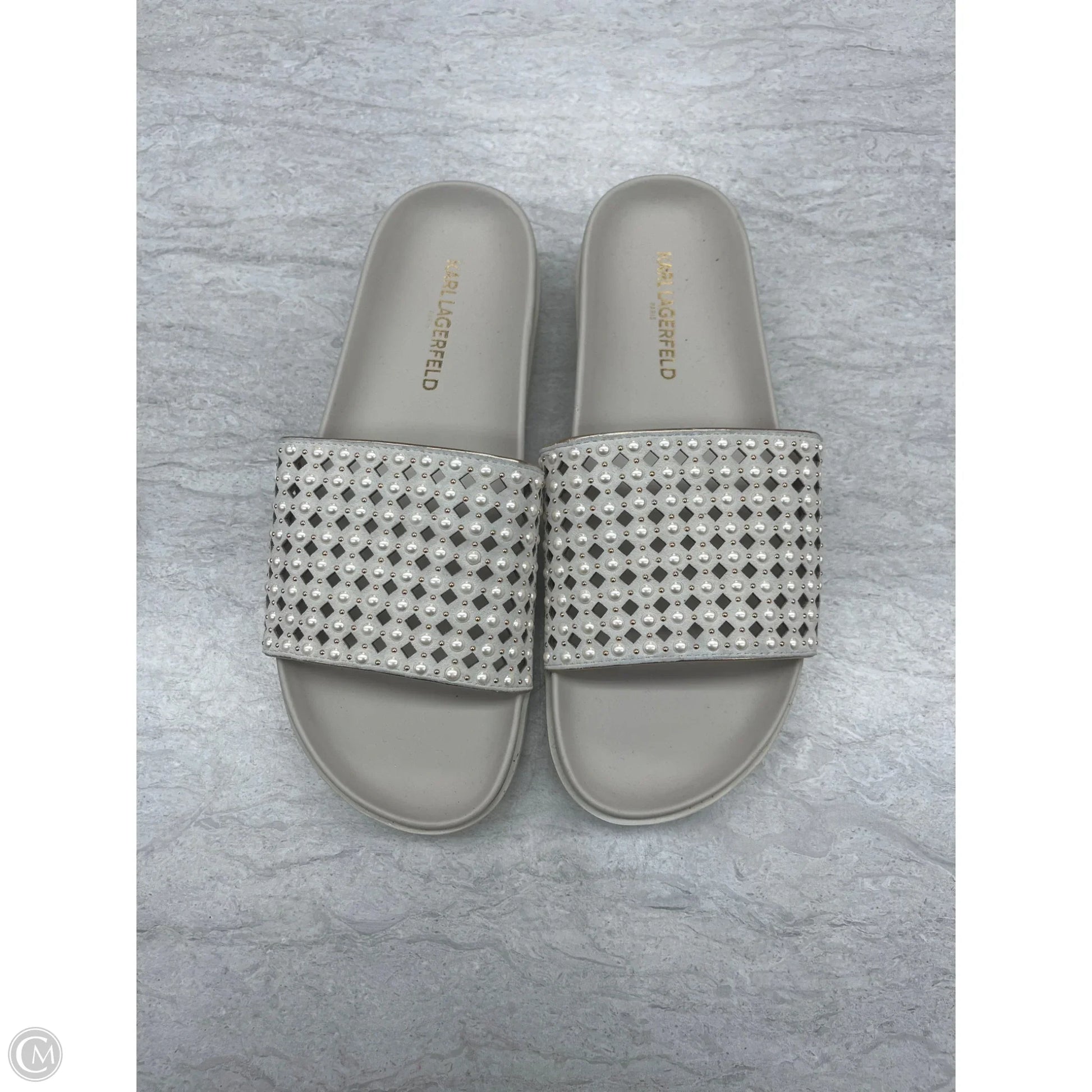 Sandals Designer By Karl Lagerfeld In Grey, Size: 8.5