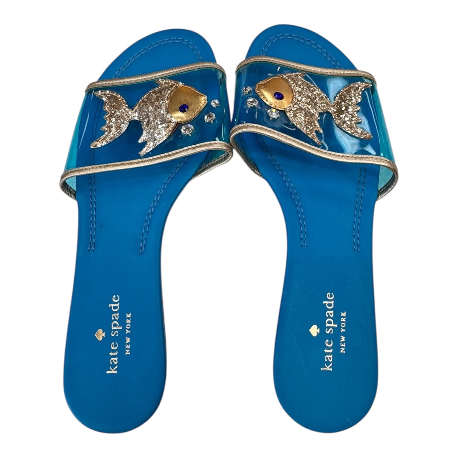 Step into summer chic with Kate Spade's blue sandals in size 9. Effortlessly stylish with a touch of elegance.