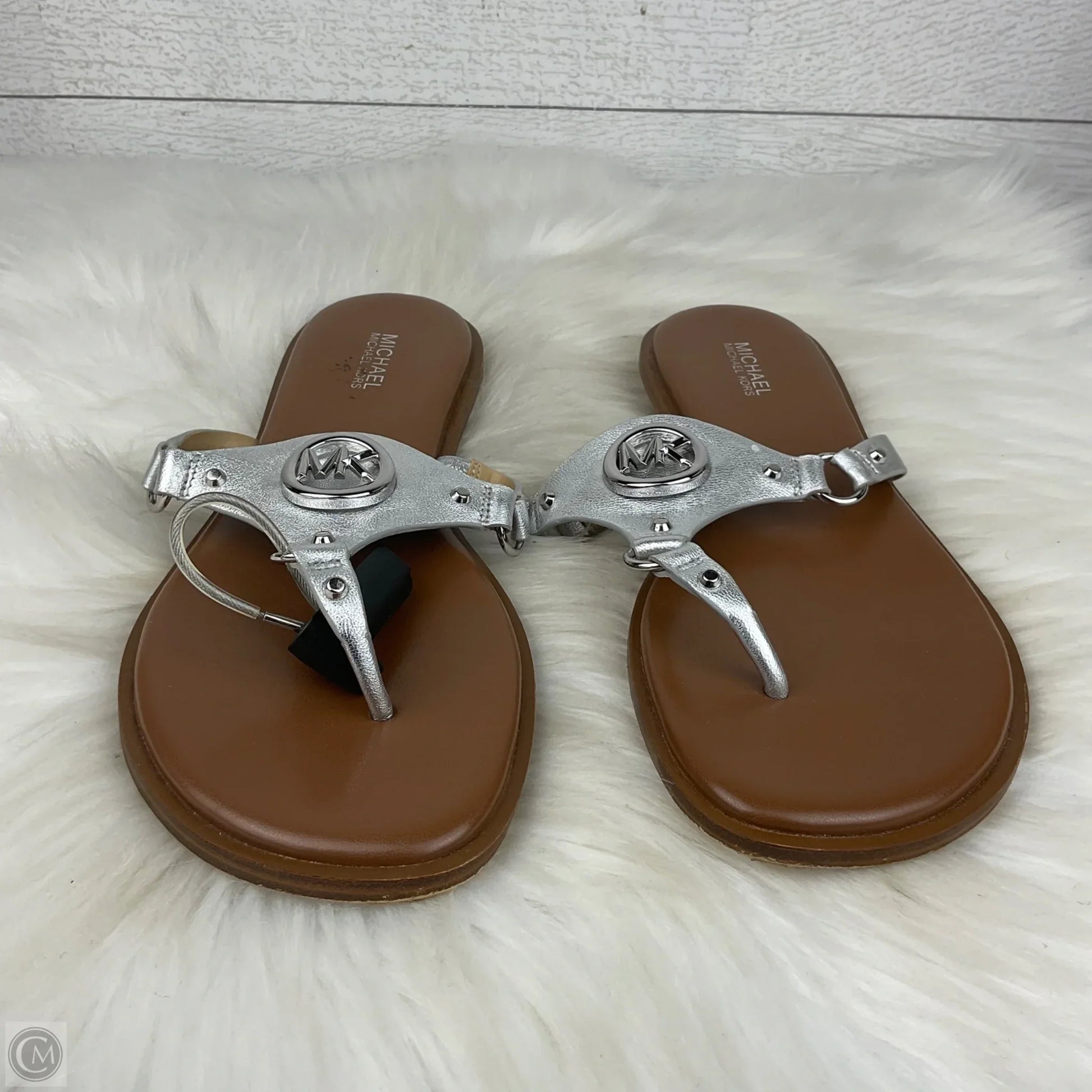 Sandals Designer By Michael Kors In Silver, Size: 7.5