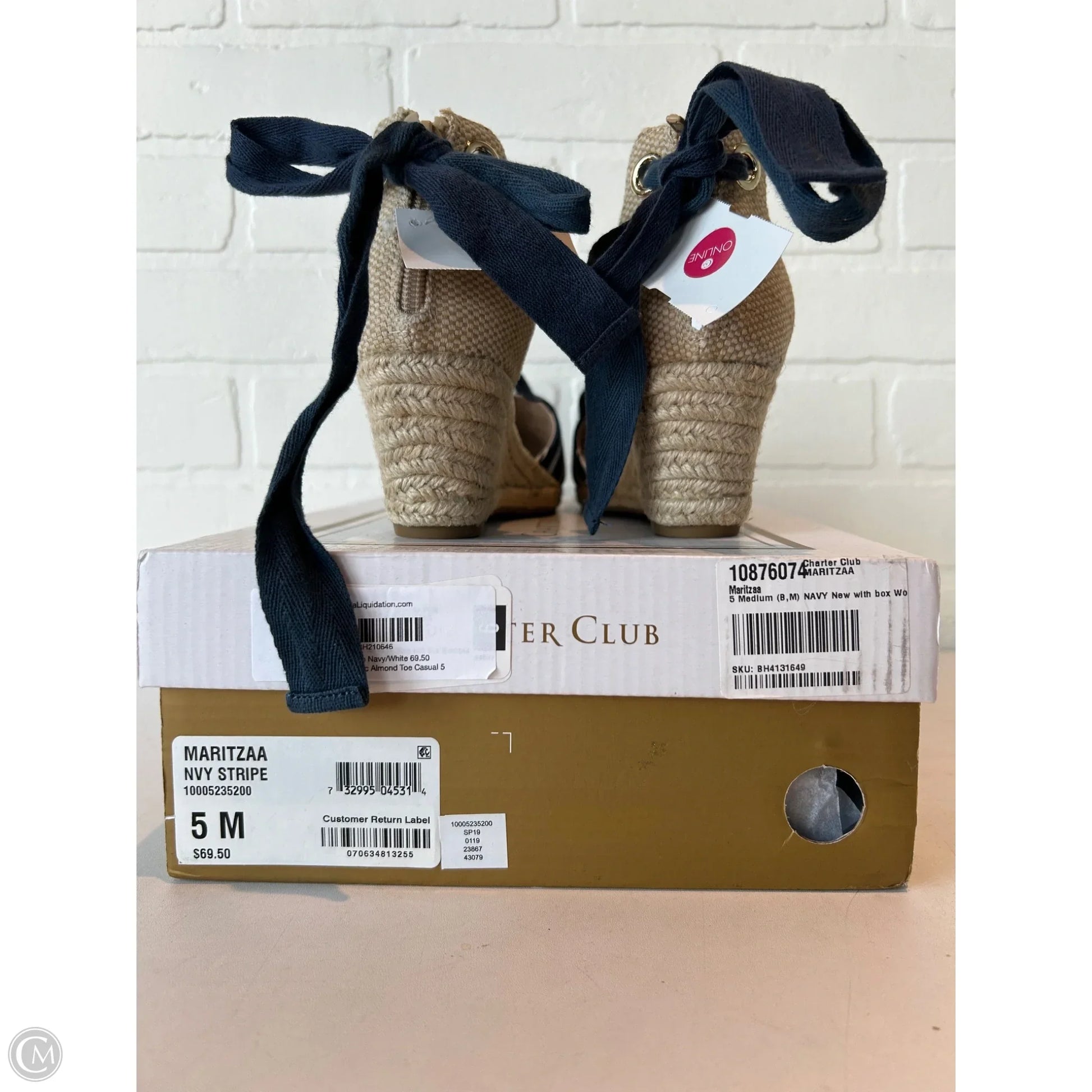 Sandals Heels Wedge By Charter Club In Blue & White, Size: 5
