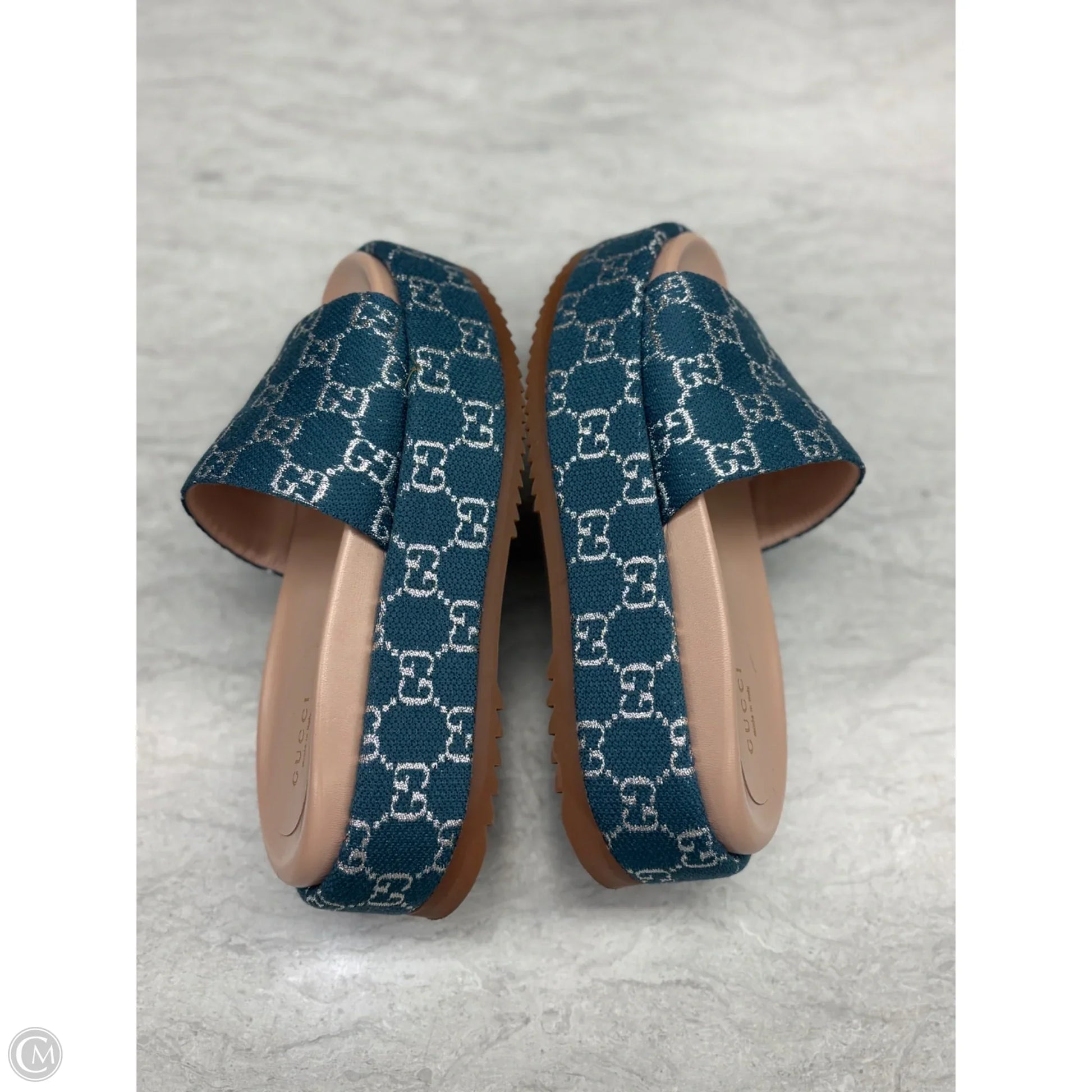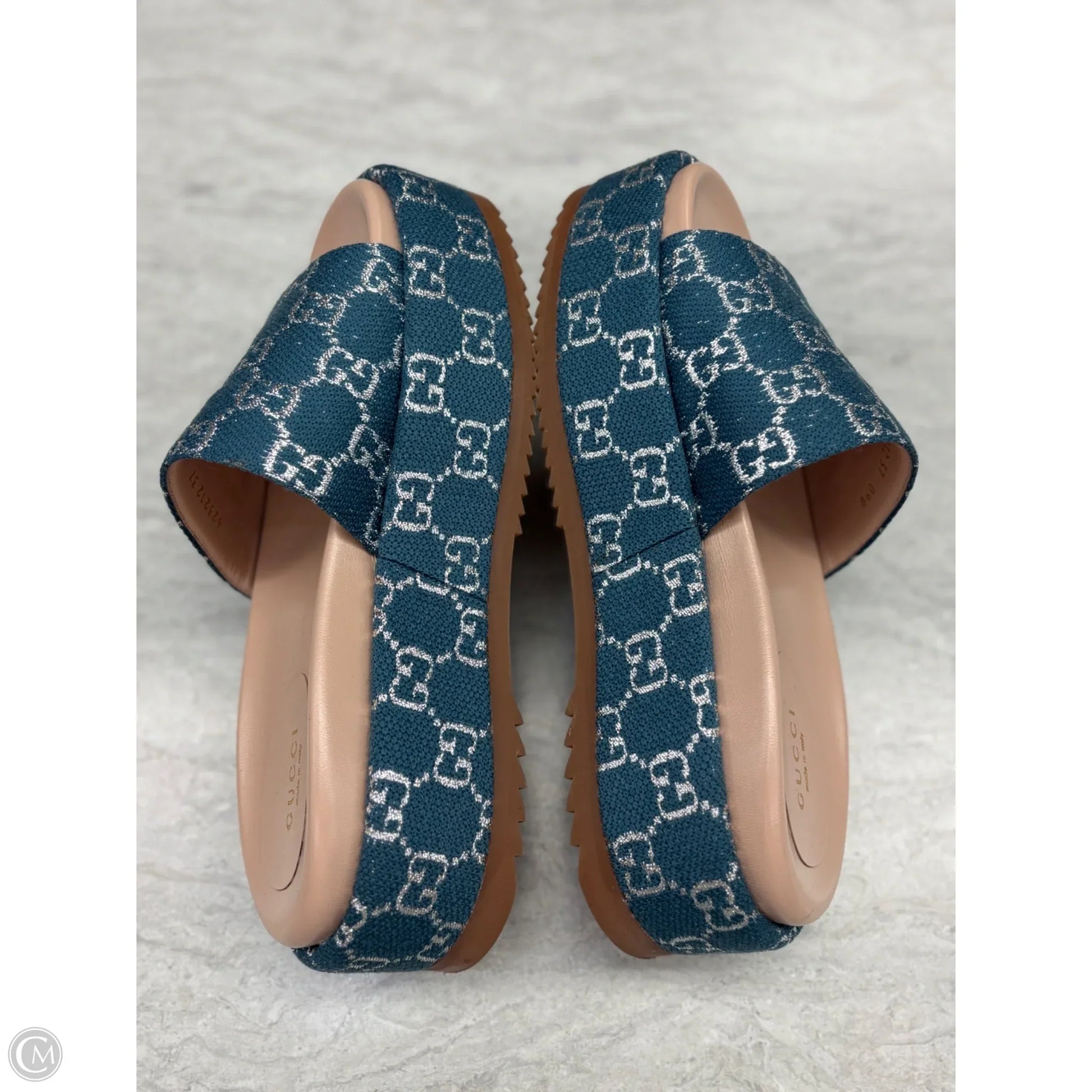 Sandals Luxury Designer By Gucci In Blue Denim, Size: 7