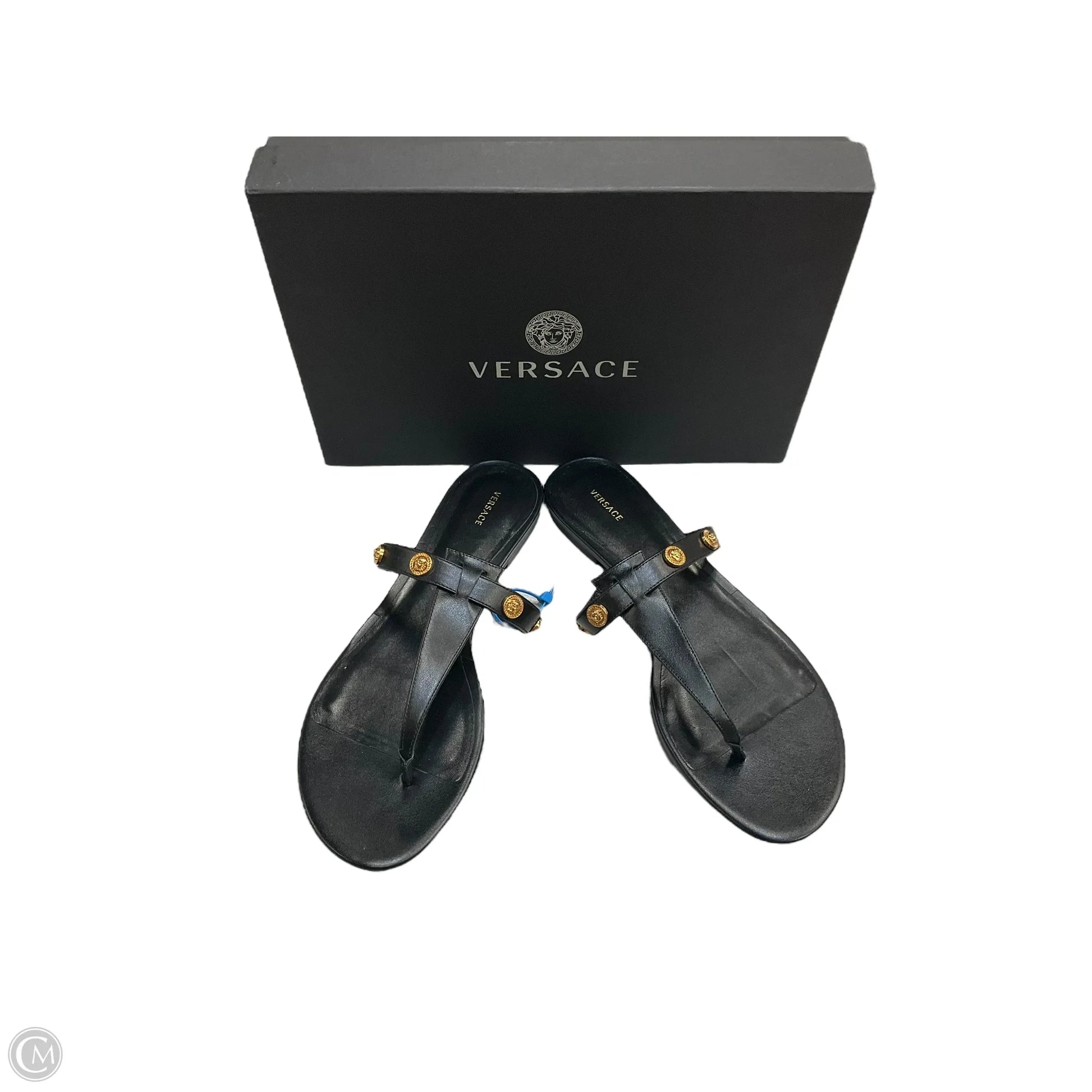 Sandals Luxury Designer By Versace In Black, Size: 9.5