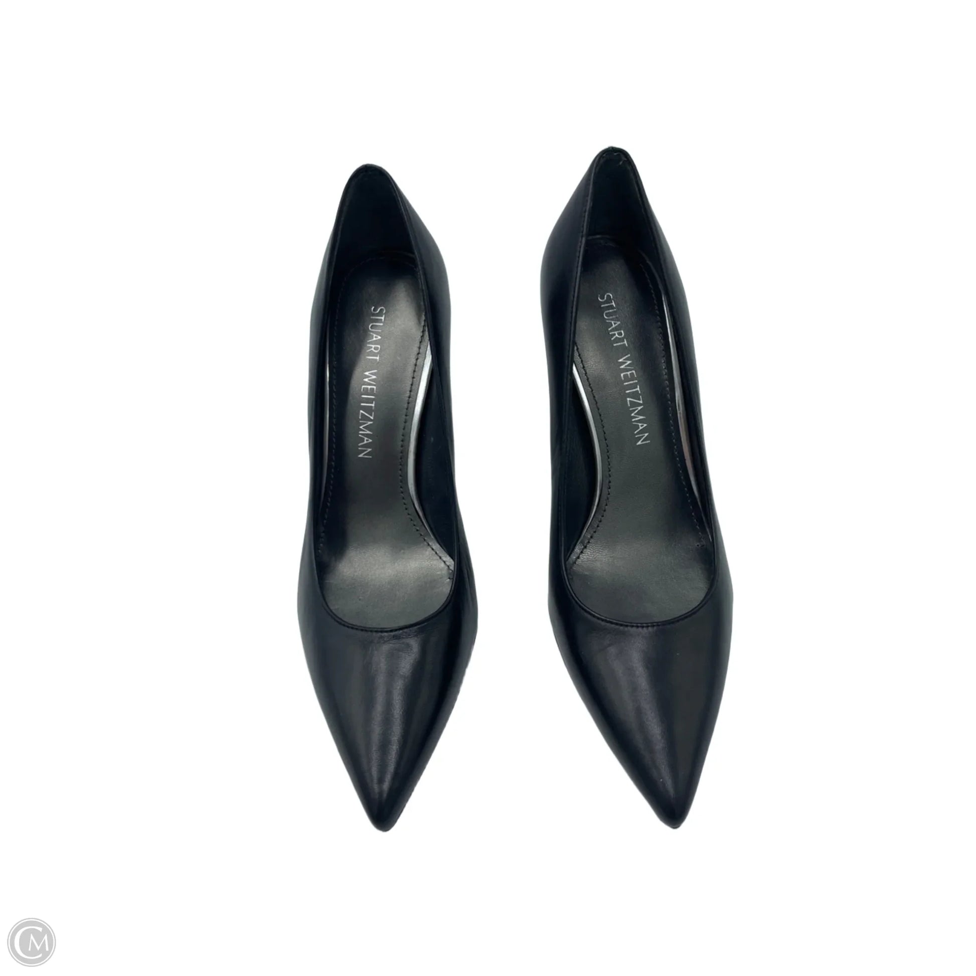 Indulge in Stuart Weitzman's sleek black shoes, size 7. Luxurious design for refined elegance.