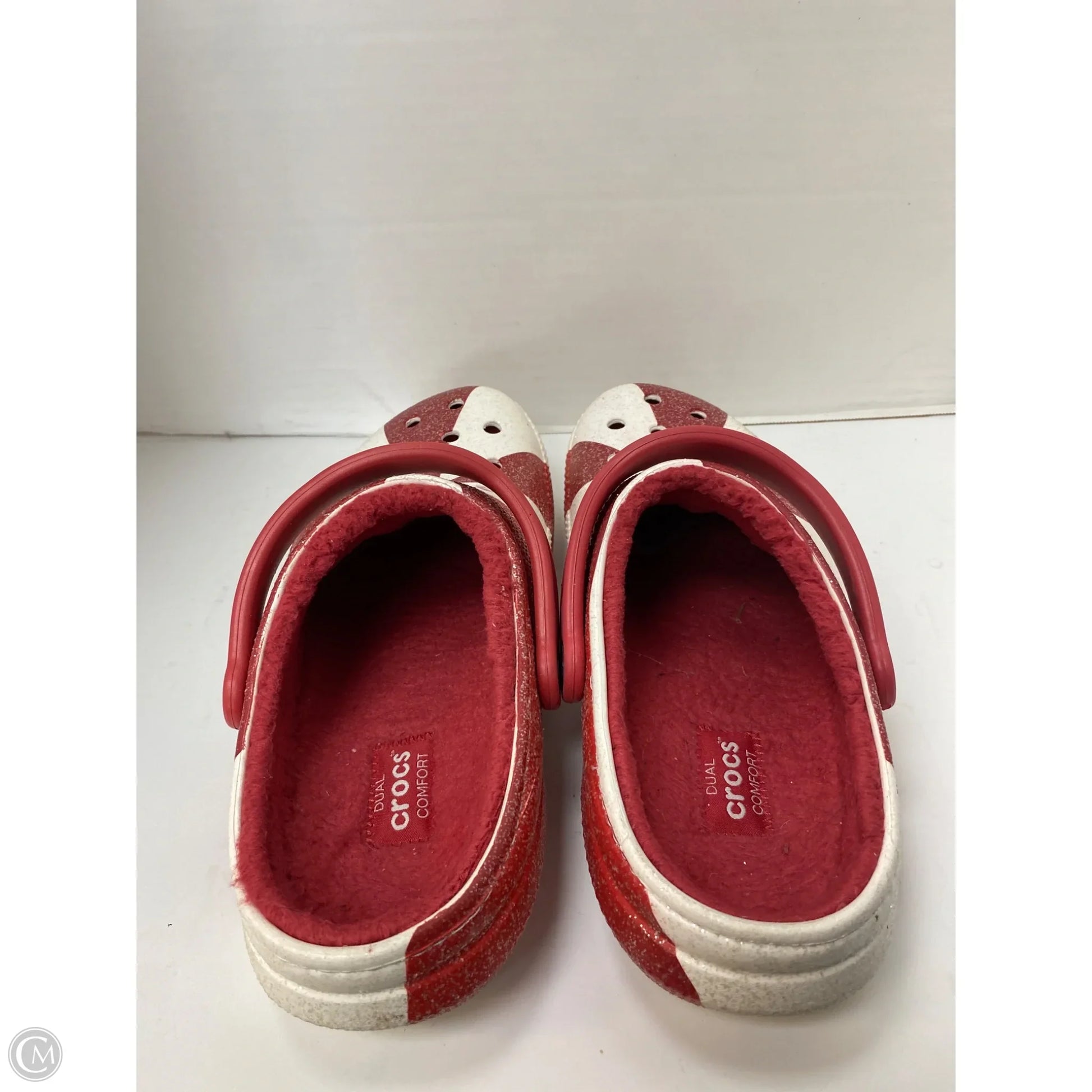Shoes Flats By Crocs In Red & White, Size: 11
