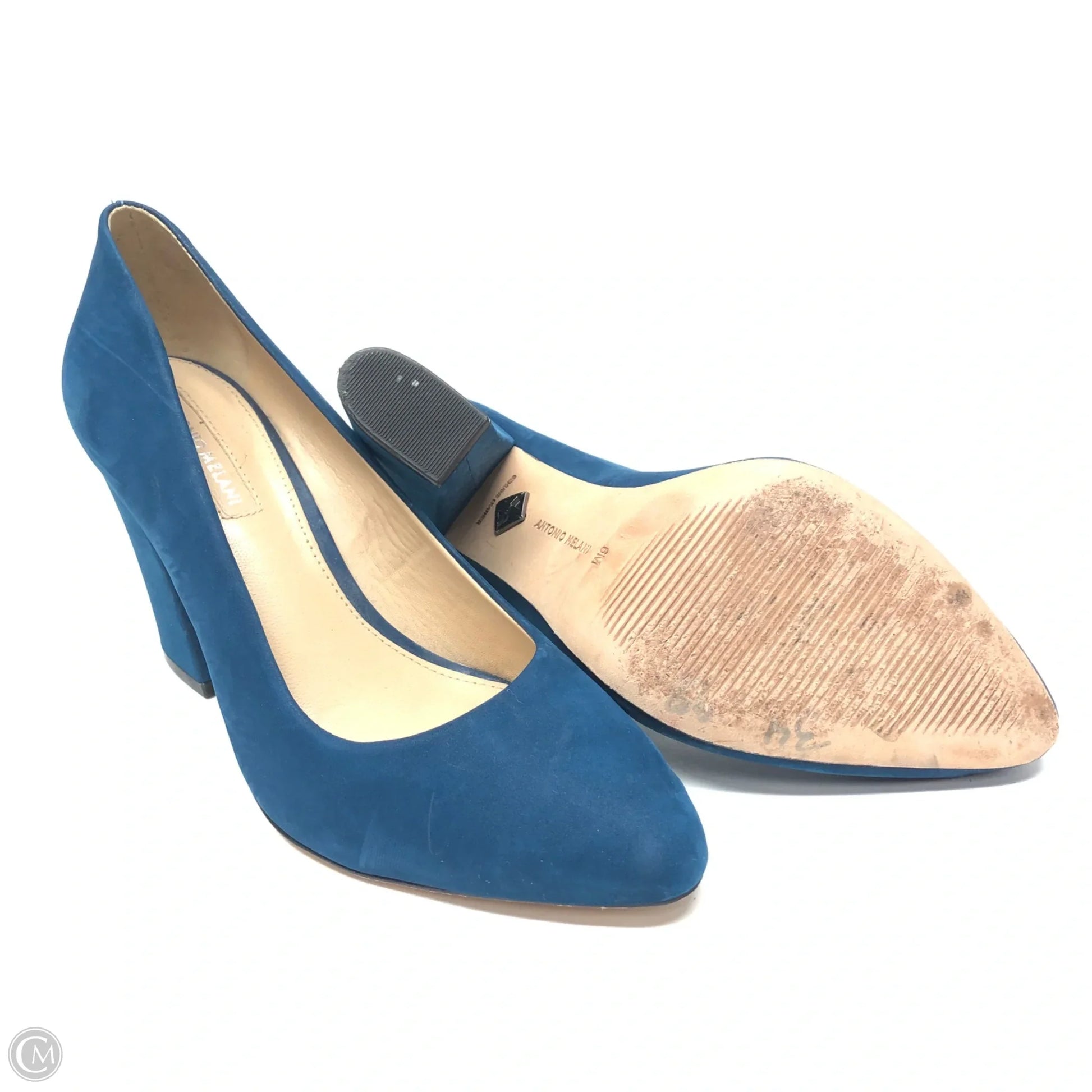 Elevate your look with these stunning blue block heels by Antonio Melani. Size 6, designed for comfort and style, perfect for any occasion.